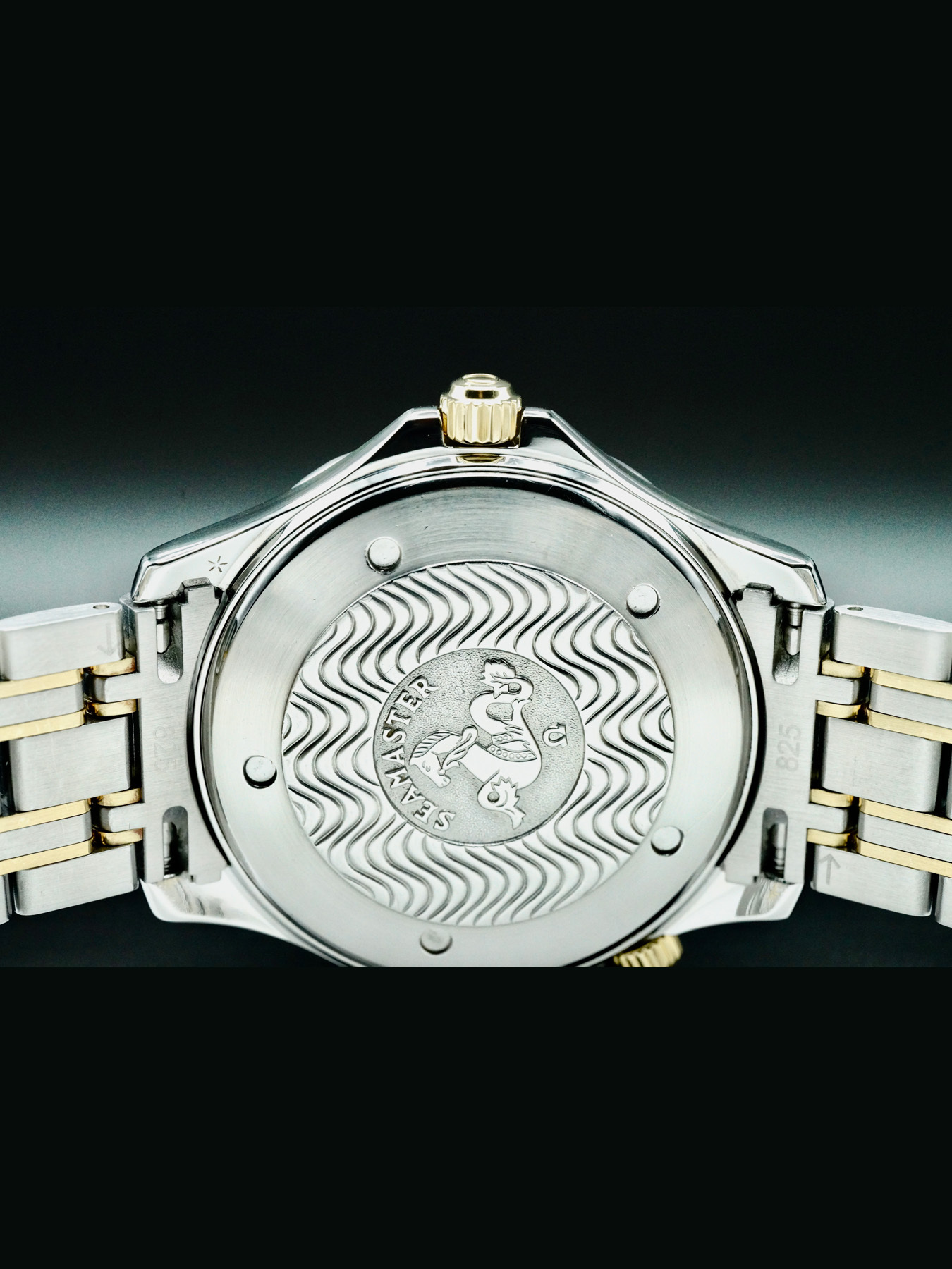 This Omega Seamaster Professional Chronometer features a 41mm stainless steel case with an 18k yellow gold bezel insert on a stainless steel & 18k yellow gold bracelet. This watch also sports a blue dial with luminous hands and index dial markers covered by scratch resistant sapphire crystal.