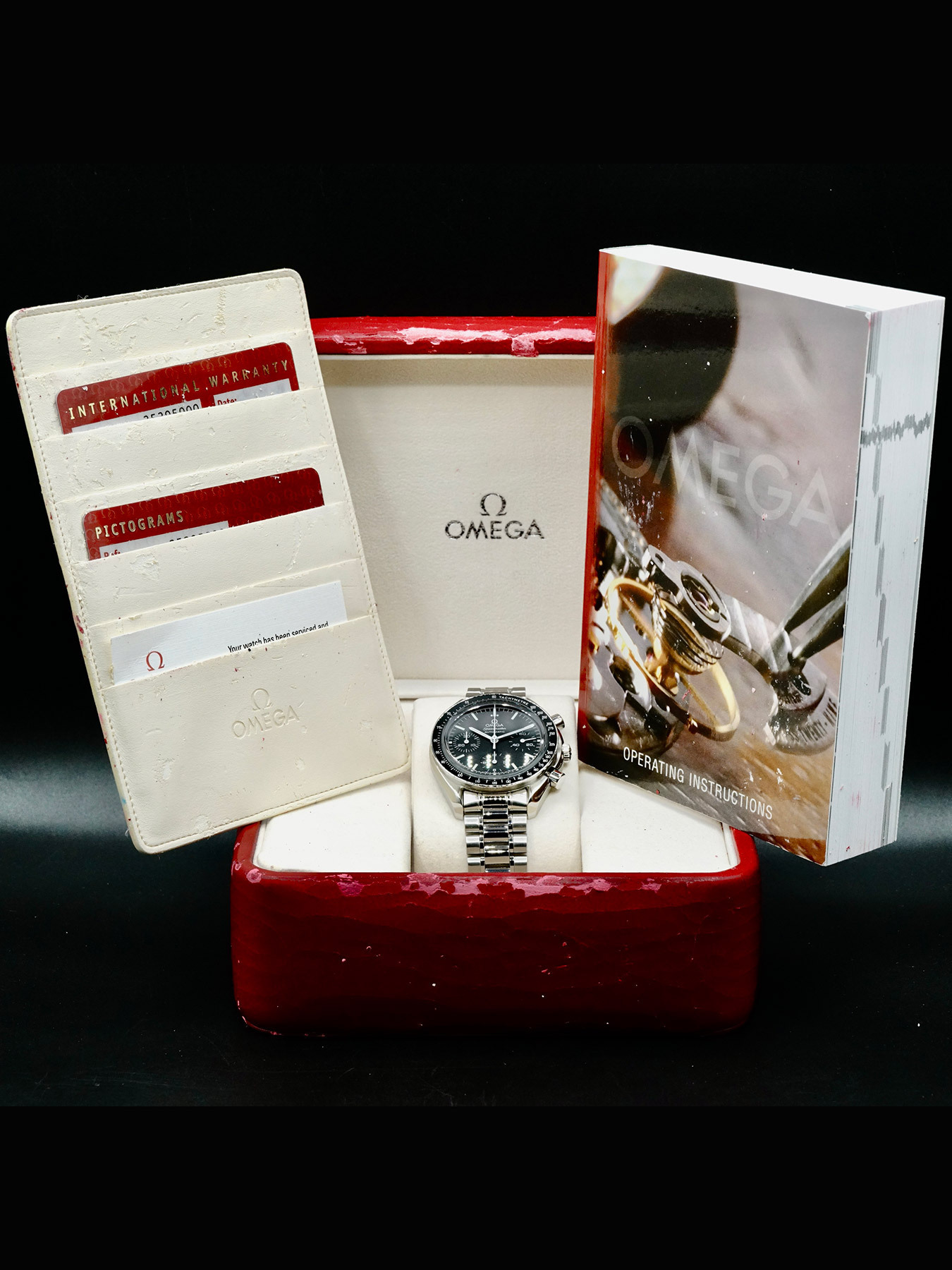 This Omega 3539.50.00 Speedmaster Reduced is in GOOD condition. This watch includes its original box very worn, instruction booklet, warranty card dated 2014.