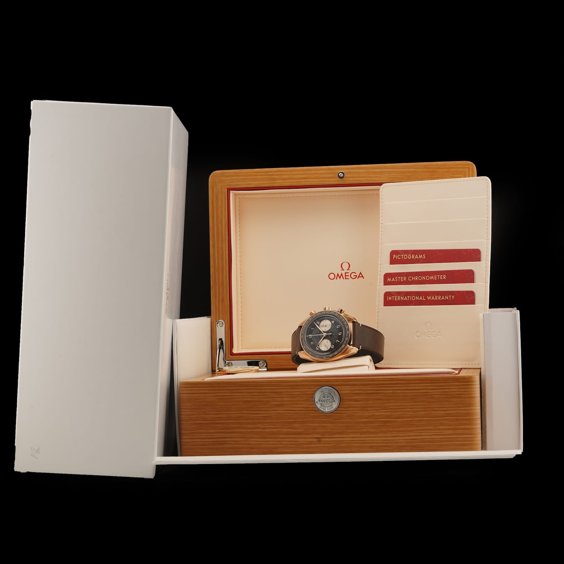 This Omega Speedmaster Chronoscope 43mm Bronze Gold on Strap 329.92.43.51.10.001 is in GREAT condition it has box, papers and warranty card. This watch has been fully authenticated and certified by Exquisite Timepieces. Please note, the photos shown are of the actual watch you will receive.