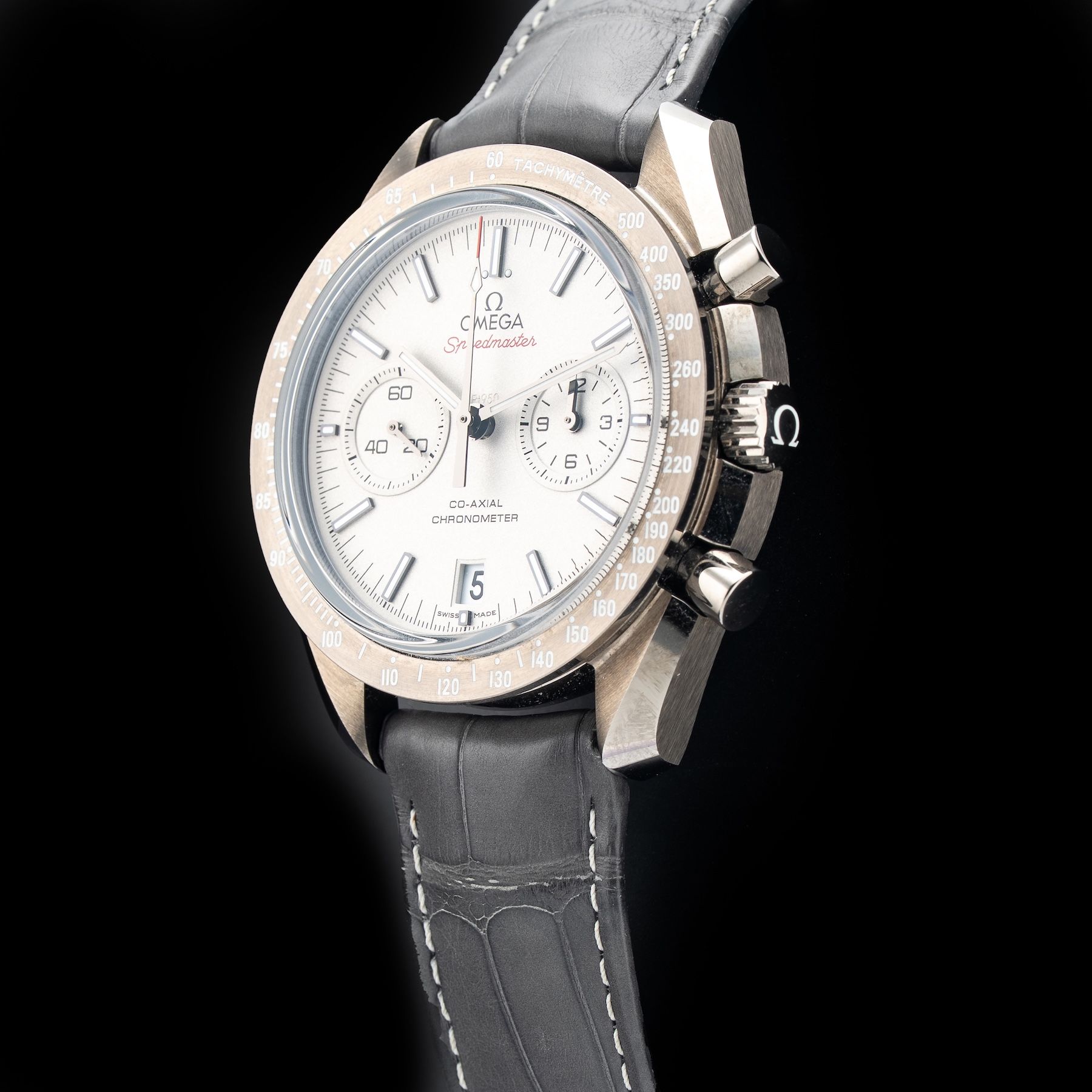 This Omega Speedmaster Grey Side of The Moon 311.93.44.51.99.001 is in GREAT condition, it has boxes, papers and warranty card dated 08/14/2021. This watch has been fully authenticated and certified by Exquisite Timepieces.