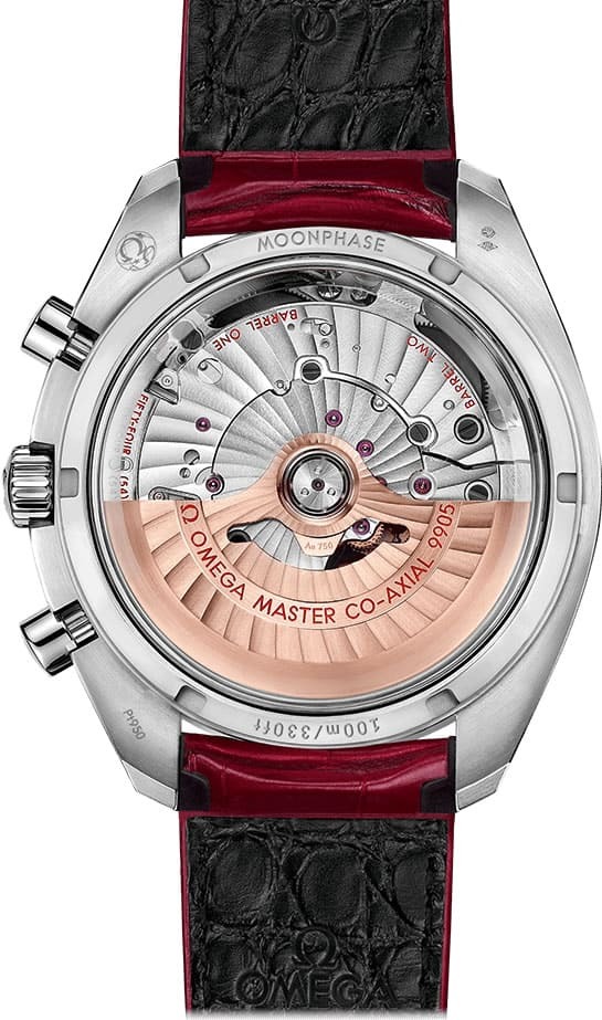 Presented on a red leather strap, the timepiece is powered by the OMEGA Master Chronometer Calibre 9905, certified at the industry’s highest standard by the Swiss Federal Institute of Metrology (METAS).