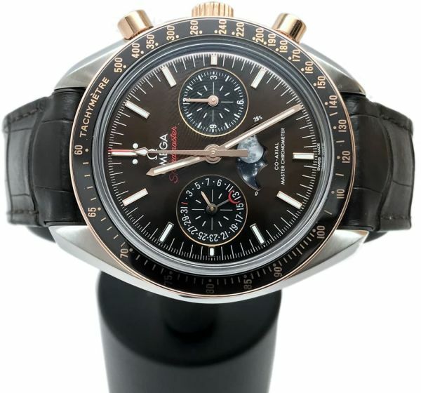 This 44.25 mm model features a brown sun-brushed dial, with diamond polished 18K Sedna™ gold indexes and hands. At 6 o'clock is the accurate Moonphase indication, which features a metallic crystal disc microstructured to obtain a high resolution image of the moon.