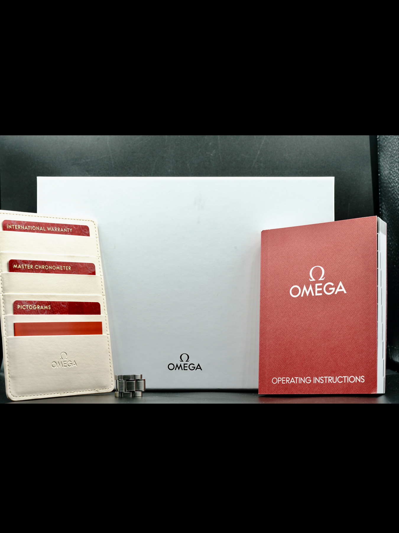 This Omega Speedmaster Racing 329.30.44.51.06.001 is in EXCELLENT condition. This watch includes its original box, operating instructions, customer service booklet, master chronometer certification, and international warranty card dated for April 2022. Extra stainless steel bracelet links.