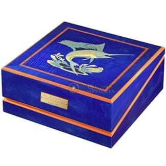 For over 70 years the Italian company Giglio have supplied the highest quality in inlaid wood cabinets all over the world. Especially for our Artisan series, they have designed a case both exceptional in quality and appearance detailed with a wonderful 'Blue Marlin' design. Intarsia designs are created with hundreds of tiny pieces of wood, carefully selected, to make each case one of unique beauty and craftsmanship. The particular variety of woods, originating for the most part from Europe and Africa, the drying process, the assembly and varnish processes, all contribute towards the making of exceptional cases. The meticulous puzzle-like assembly of tiny pieces of wood may require up to 25 different wood varieties. Giglio's woods are all kiln-dried and the veneer is meticulously selected. Typically, the veneers comprise ebony, elmwood, maple, poplar, briar, rosewood, vavon and walnut dyed in different colors.