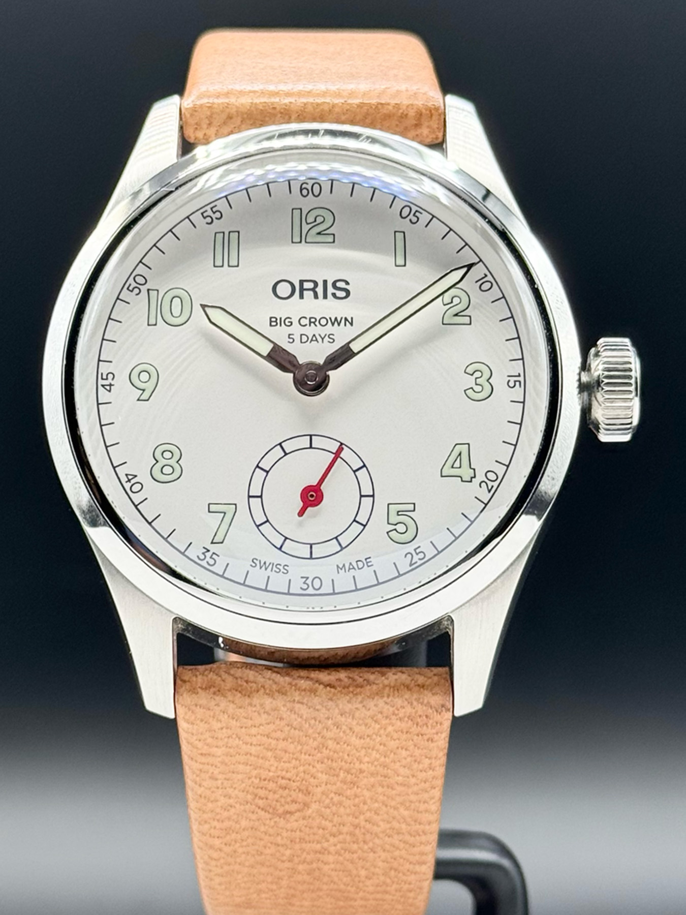 This Oris 01 401 7781 4081 Big Crown Wings of Hope Limited Edition is in GREAT condition. This watch includes its Original Box, Original Papers, Warranty Not Dated and Extra Strap. This watch has been fully authenticated and certified by Exquisite Timepieces.
