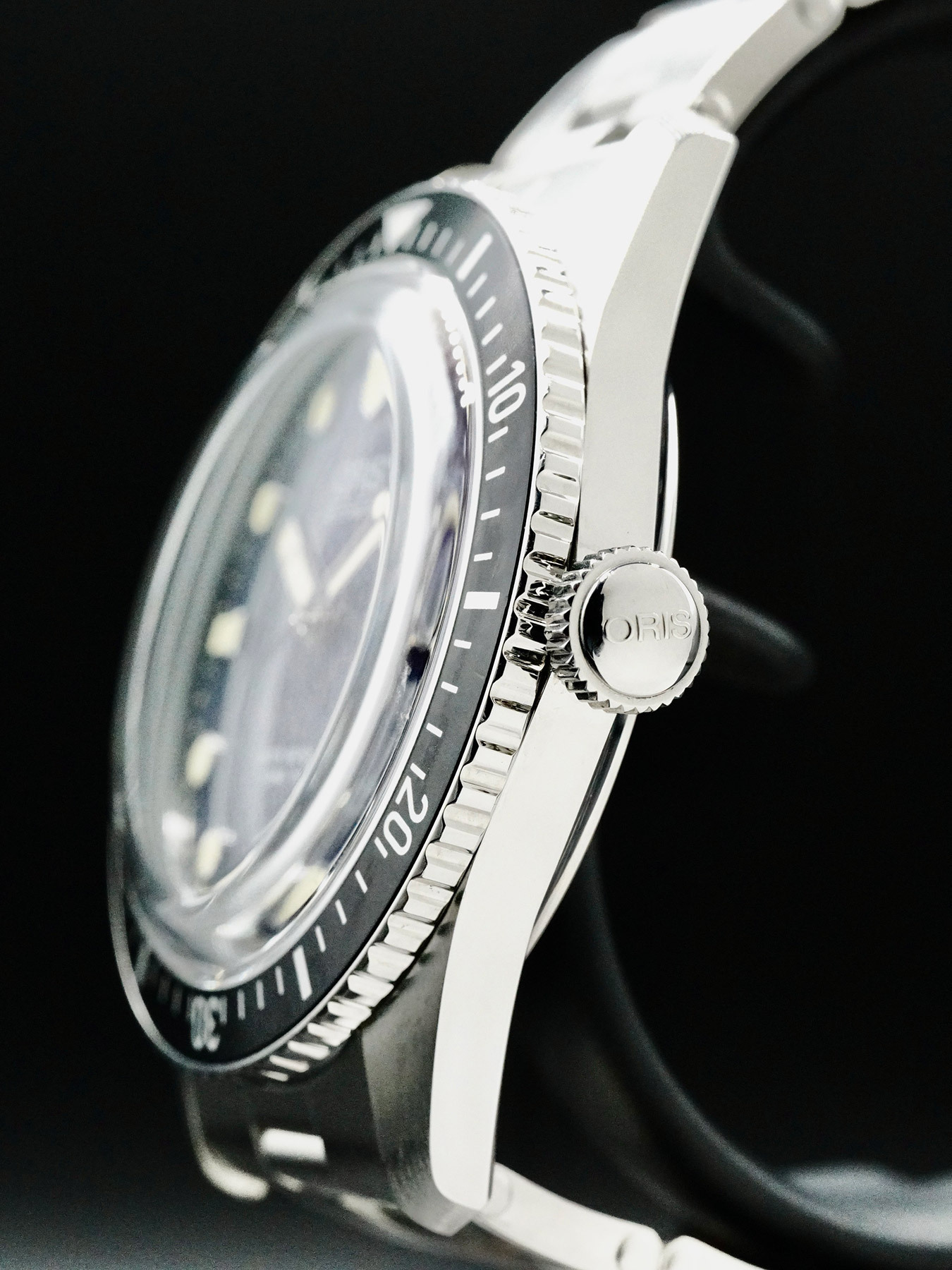 This Oris Divers Sixty-Five on Steel Bracelet 01 733 7720 4055-07 8 21 18 is in GREAT condition. This watch includes its original box, product manual, and guarantee card. No date on guarantee card.