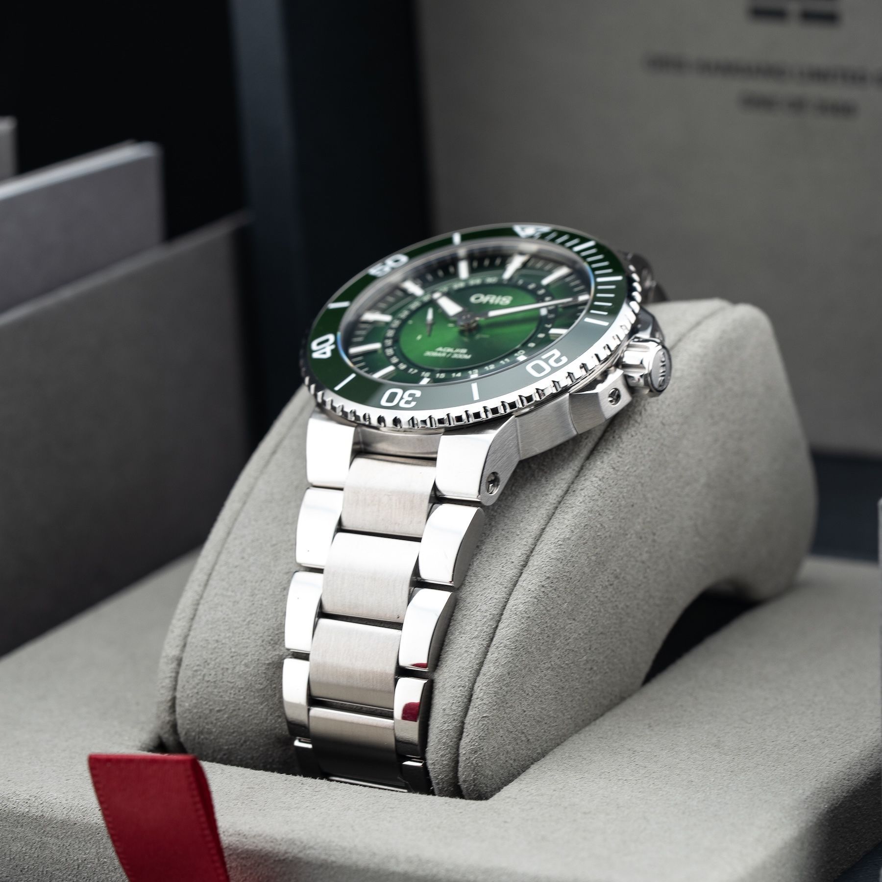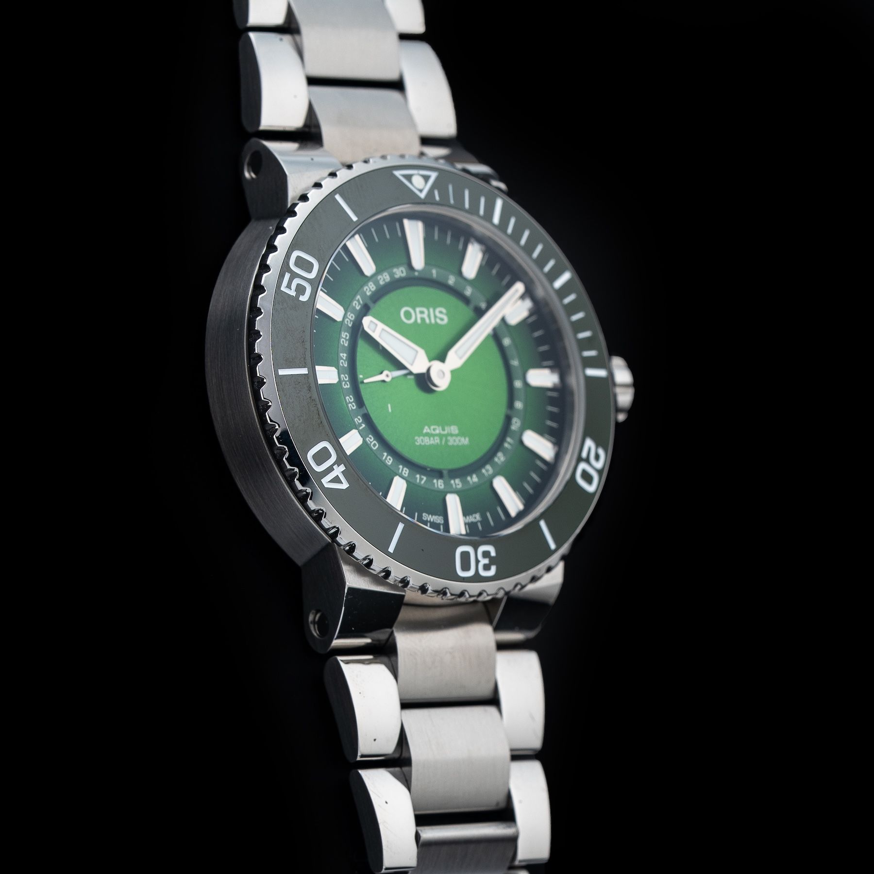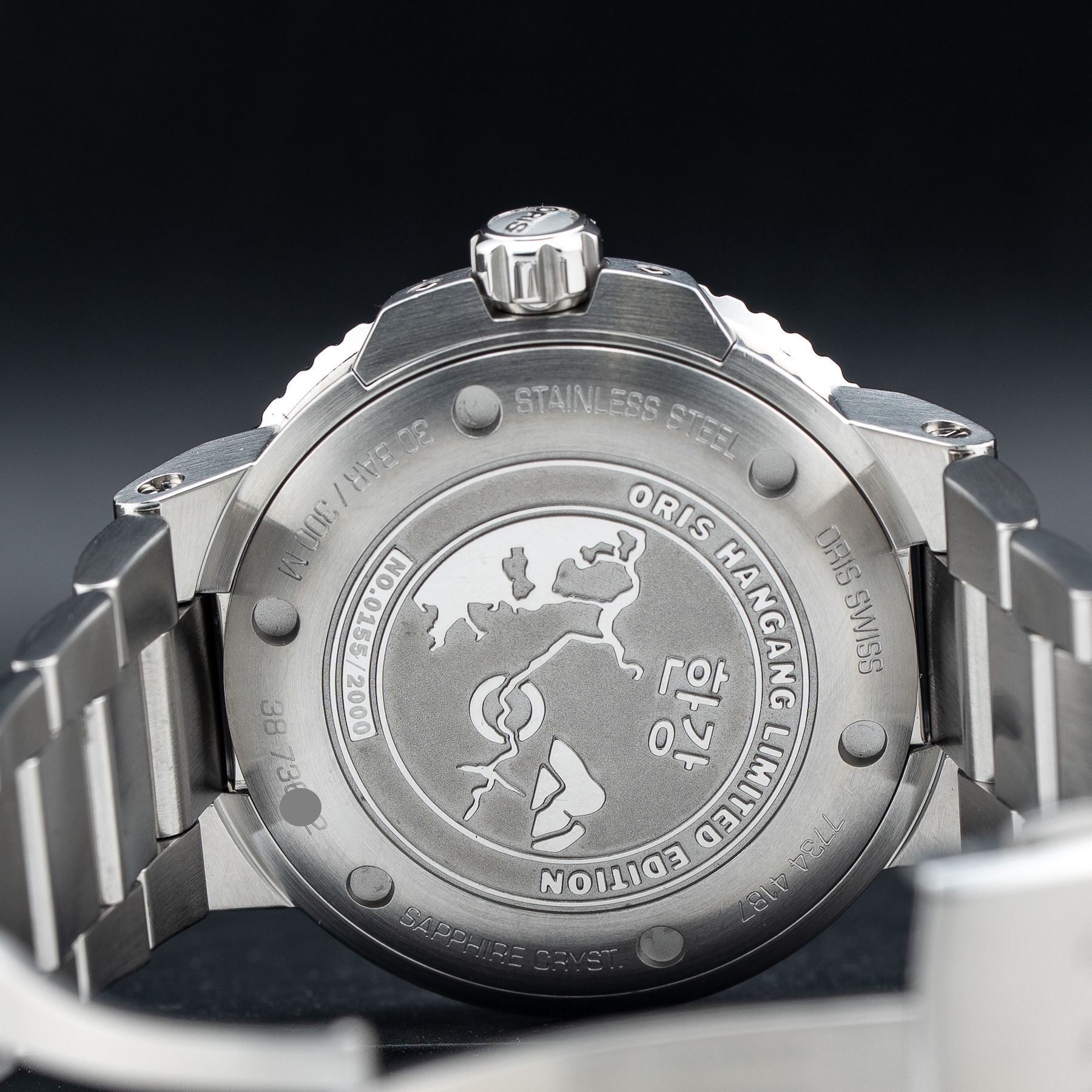 This Oris 01 743 7734 4187 Aquis Hangang Limited Edition is in GREAT condition. This watch includes its Original Box and Warranty Card Not Dated. This watch has been fully authenticated and certified by Exquisite Timepieces. Please note, the photos shown are of the actual watch you will receive.