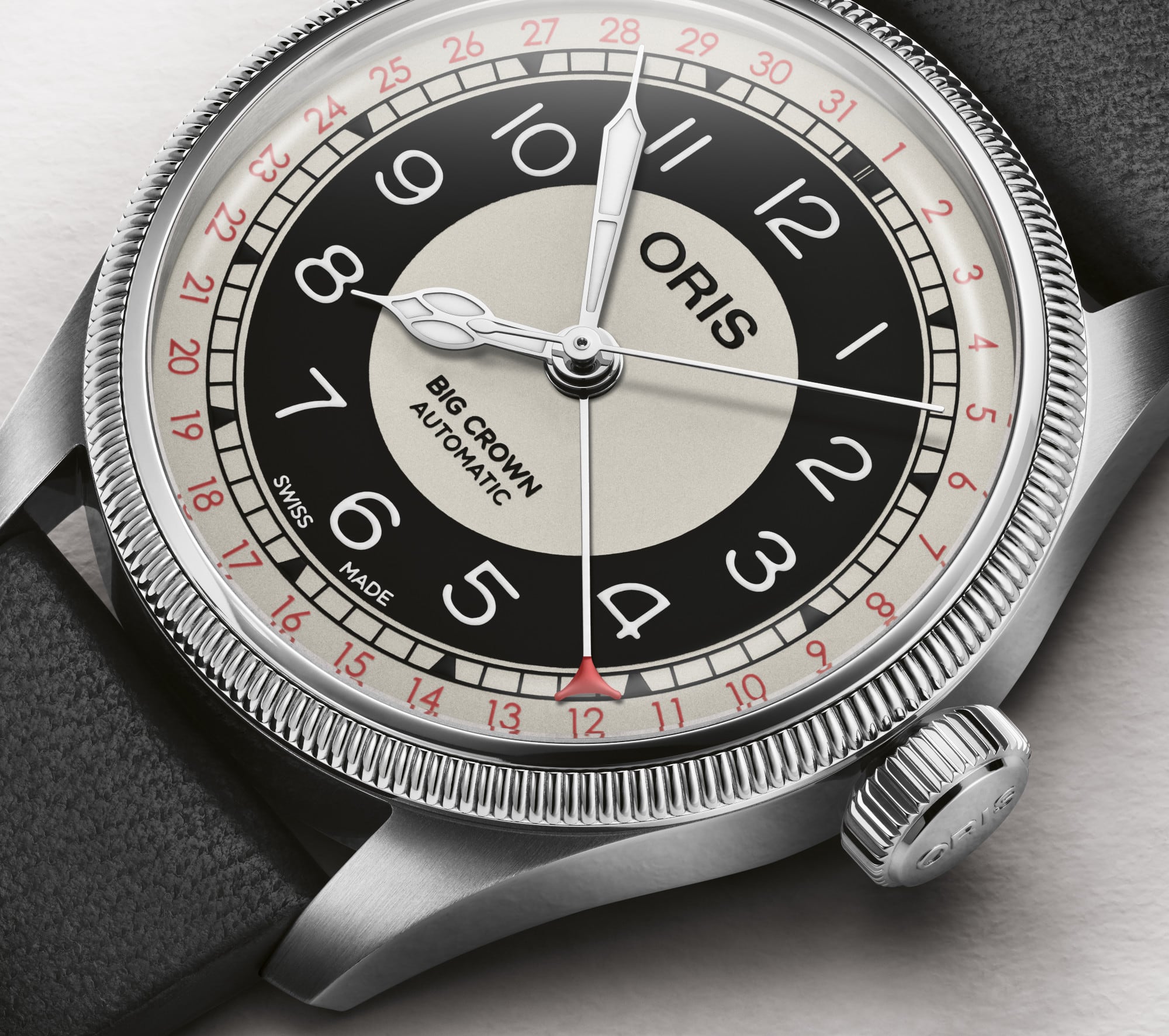 The story of Oris’s independent mind comes to the fore with a non-limited version of the Big Crown Pointer Date design collectors call the “Bullseye”