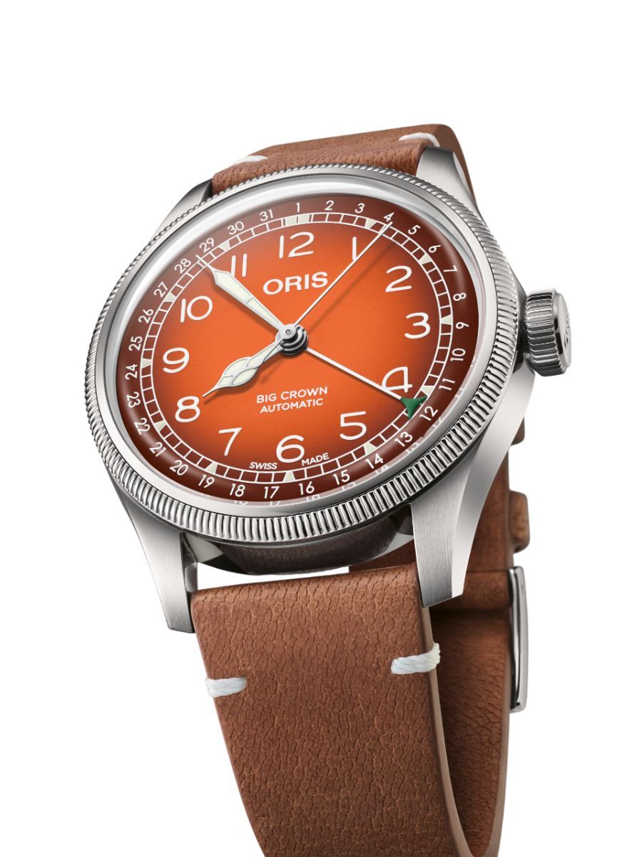 The burnt sunset gradient orange dial of the new Oris X Cervo Volante has a warmth to it, like chestnuts roasting on a fire. It complements the mahogany brown Cervo Volante strap, hand-crafted from sustainably sourced and tanned deer leather.