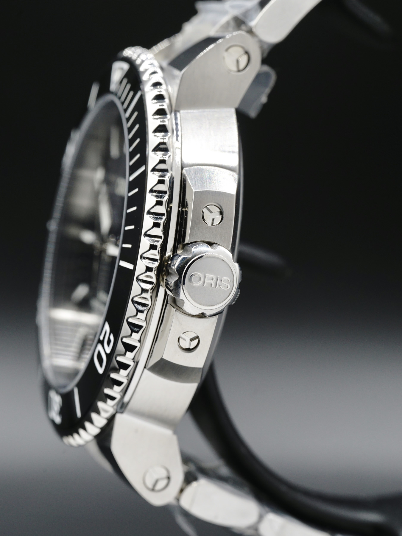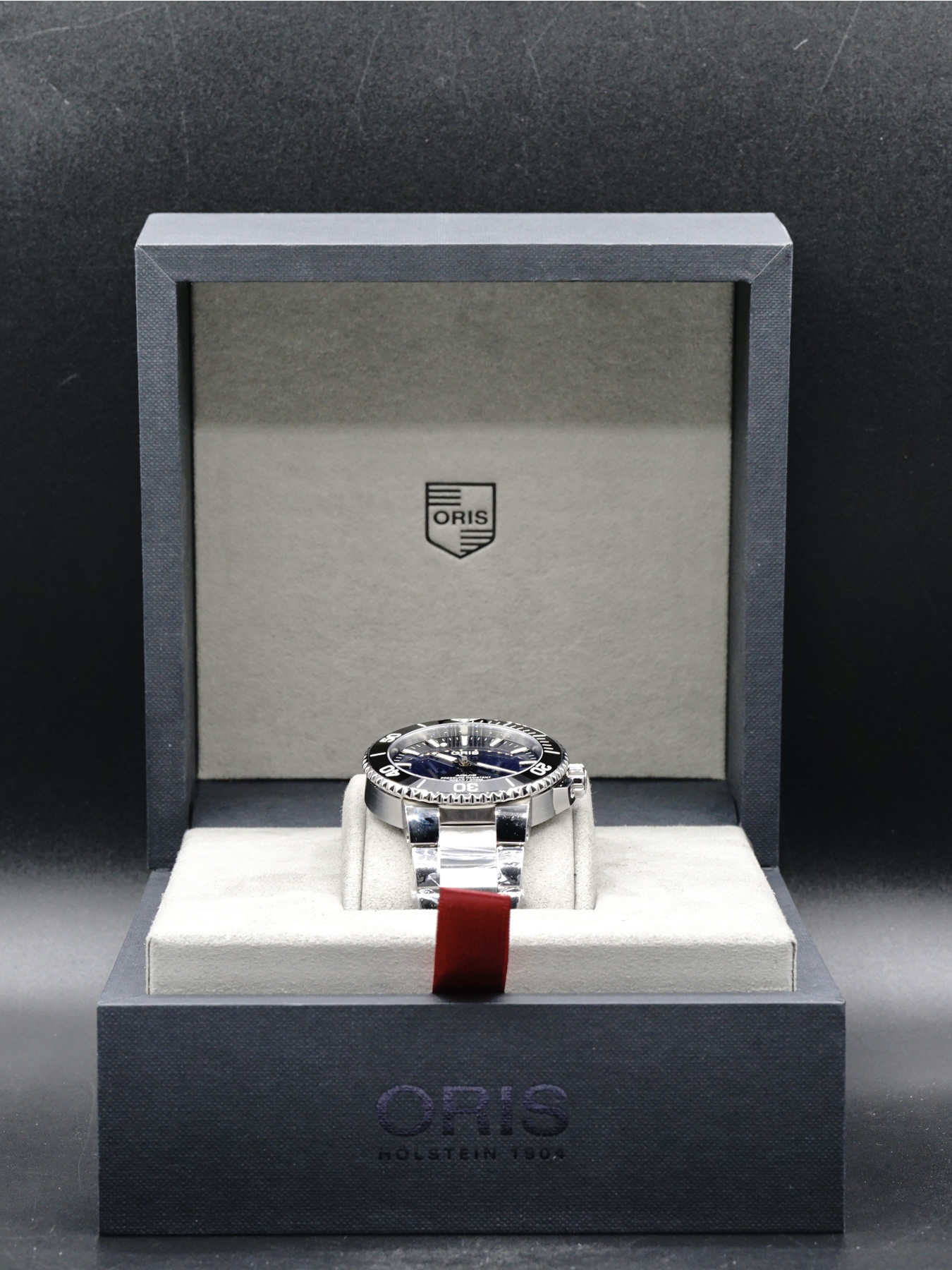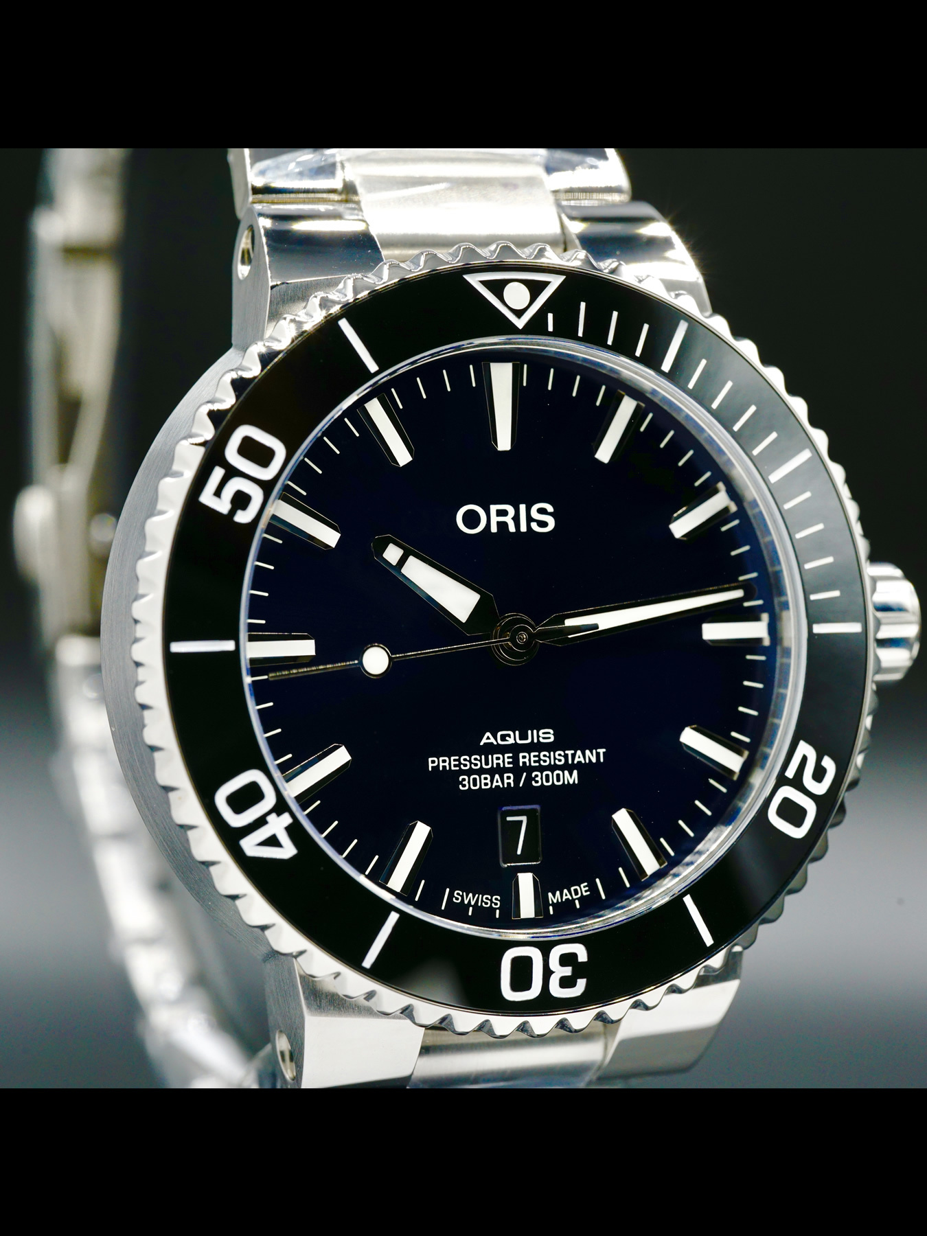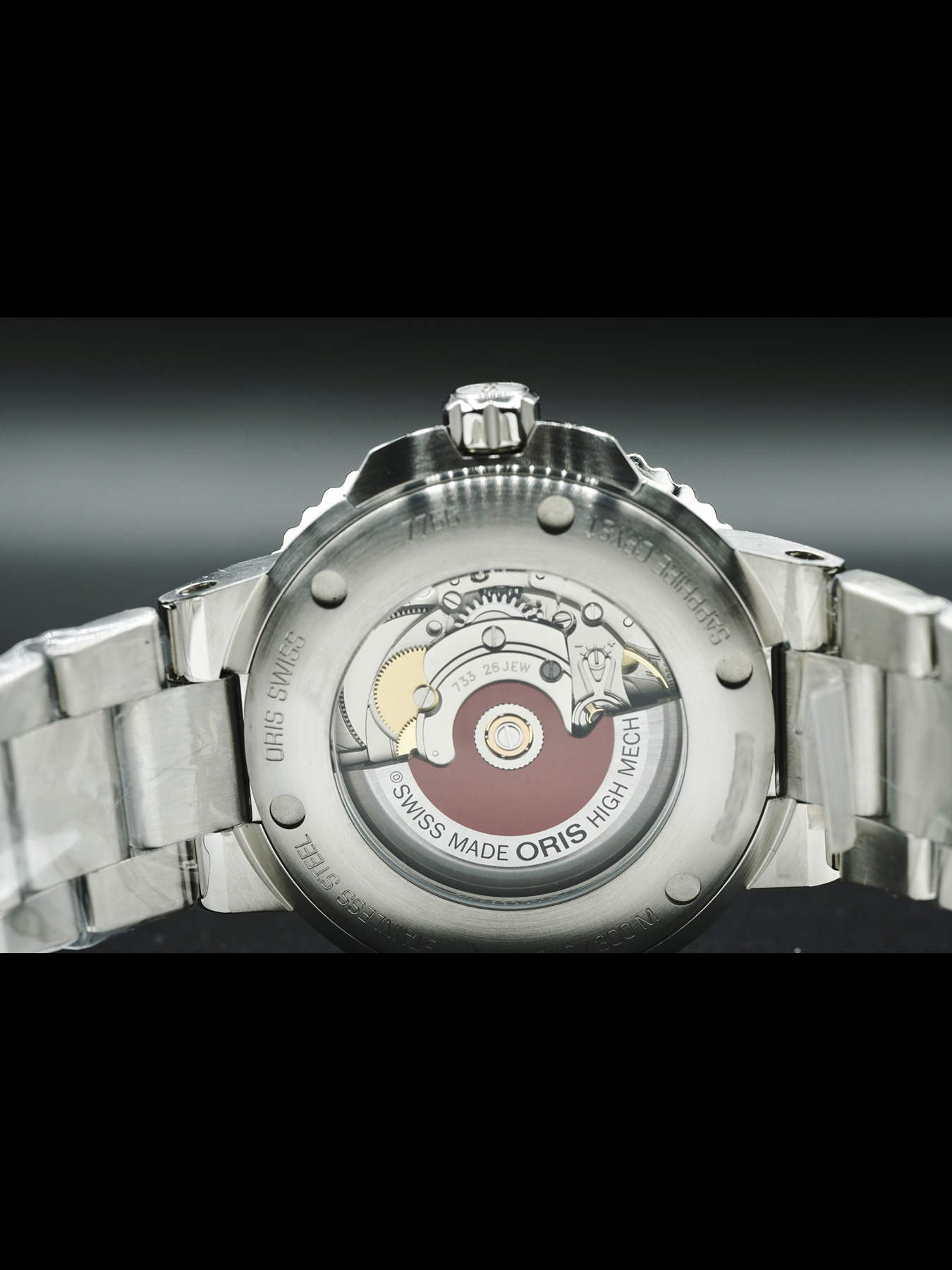 Powered by Oris Calibre 733 for a power reserve of approximately 38 hours. Water resistance up to 300 meters (1,000 feet).