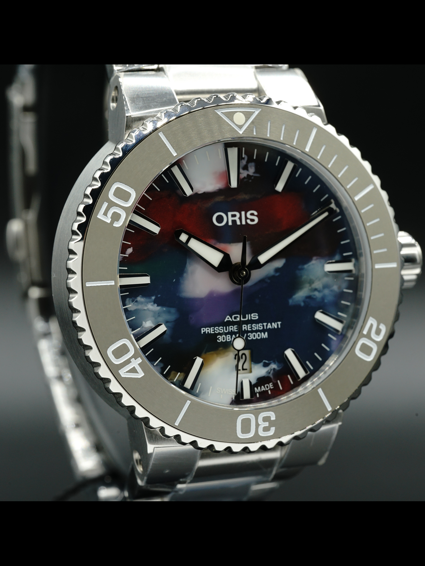 This Oris Aquis Date Upcycle 41mm 01 733 7766 4150-Set is in GREAT condition, it has box, papers and warranty card dated 11/2025. This watch has been fully authenticated and certified by Exquisite Timepieces.