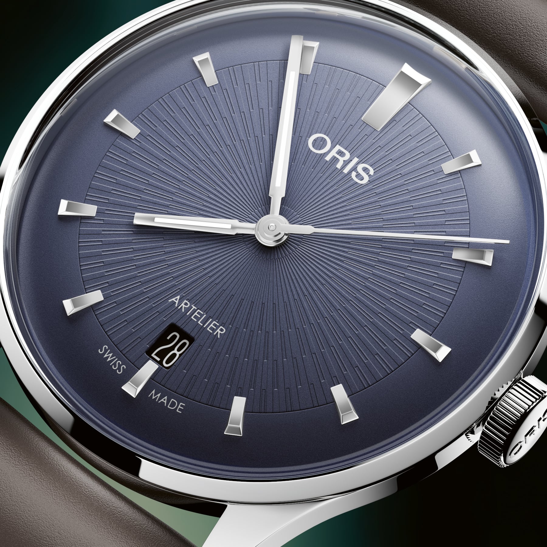 Oris is delighted to announce the revival of the Artelier line of urban dress watches. The new, fully redesigned collection includes this Artelier Date 38.00 mm version. It bares all the hallmarks of the new line: a taut, modern case; a simple, uncluttered dial design; and the option of a utilitarian new bracele t design. This contemporary, intentional expression of a classic and much - loved Oris design is a statement, designed for and by the next generation of Swiss Made mechanical watch lovers. The lead designer on the project was 24 - year - old Lena Huwiler. Her vision was to imagine a striking but universal watch design that would be enjoyed by her generation, by anyone passionate about industrial design, ergonomics, aesthetics and the eternal value of high - quality Swiss Made mechanical watches. That vision is clea rly visible across the collection, never more so than in this entry - level model, a protean piece that delivers the blend of style and versatility today’s buyers are looking for. Oris only makes mechanical watches, and so this is powered by an automatic with Oris’s signature Red Rotor clearly visible through the watch’s transparent case back.