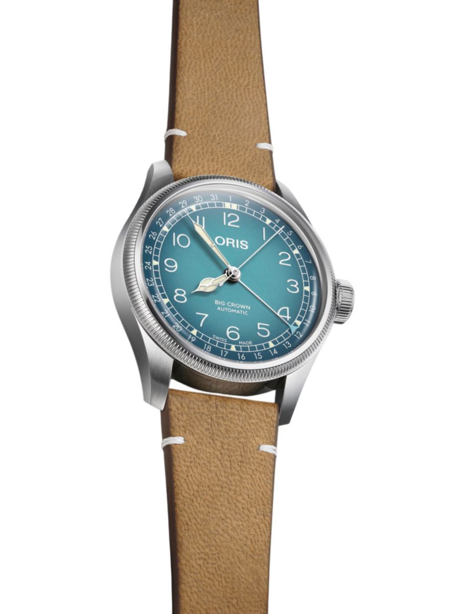 The Oris x Cervo Volante collaboration begins with three Big Crown Pointer Date watches. Each has a gradient dial inspired by Alpine hues and a strap made of sustainable deer leather. They come with a pouch and a card holder made of the same material. But they’re not limited, and nor is this is a one-time deal.