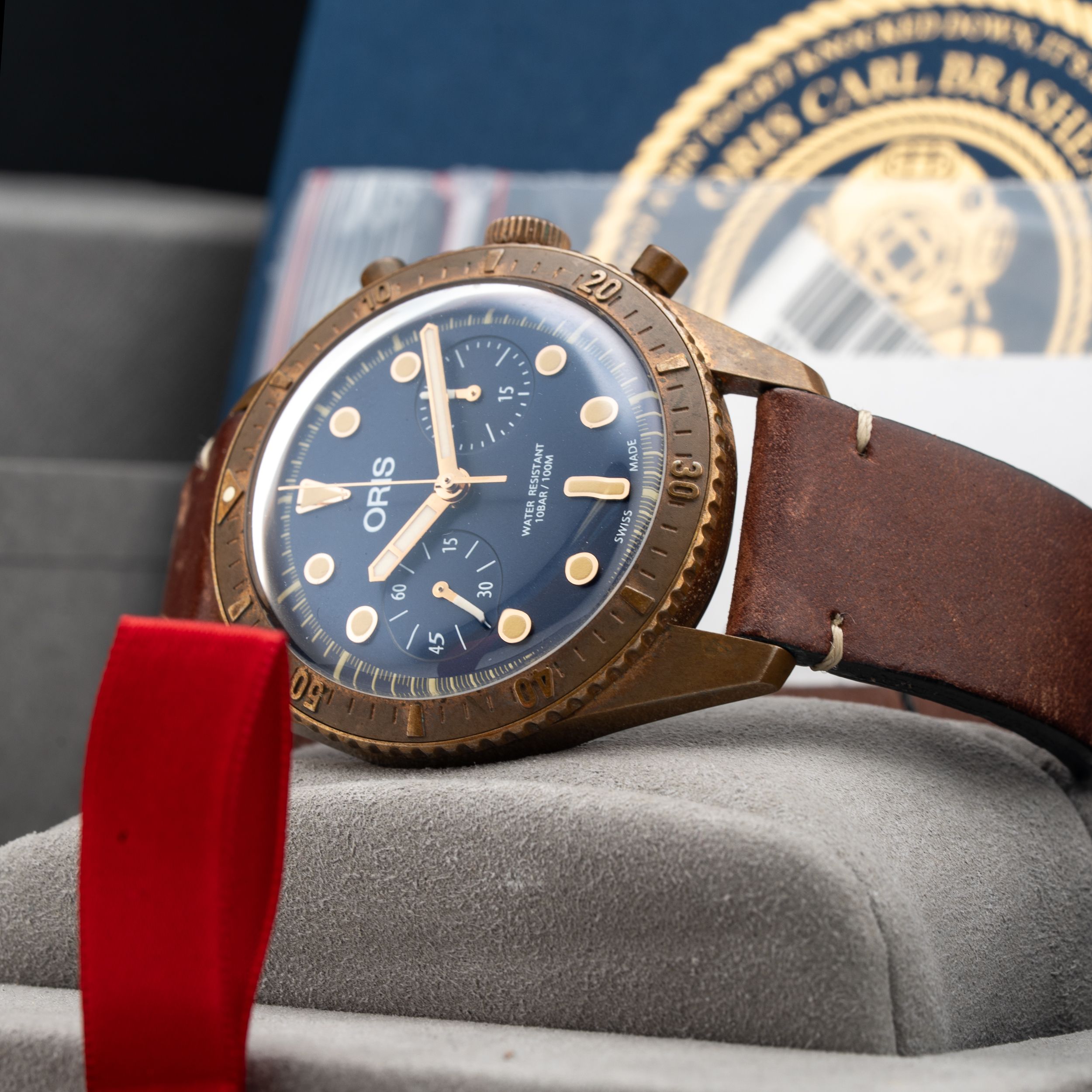 This Oris Carl Brashear 01 771 7744 3185 is in GREAT condition. Original box and original papers.This watch has been fully authenticated and certified by Exquisite Timepieces. Please note, the photos shown are of the actual watch you will receive.