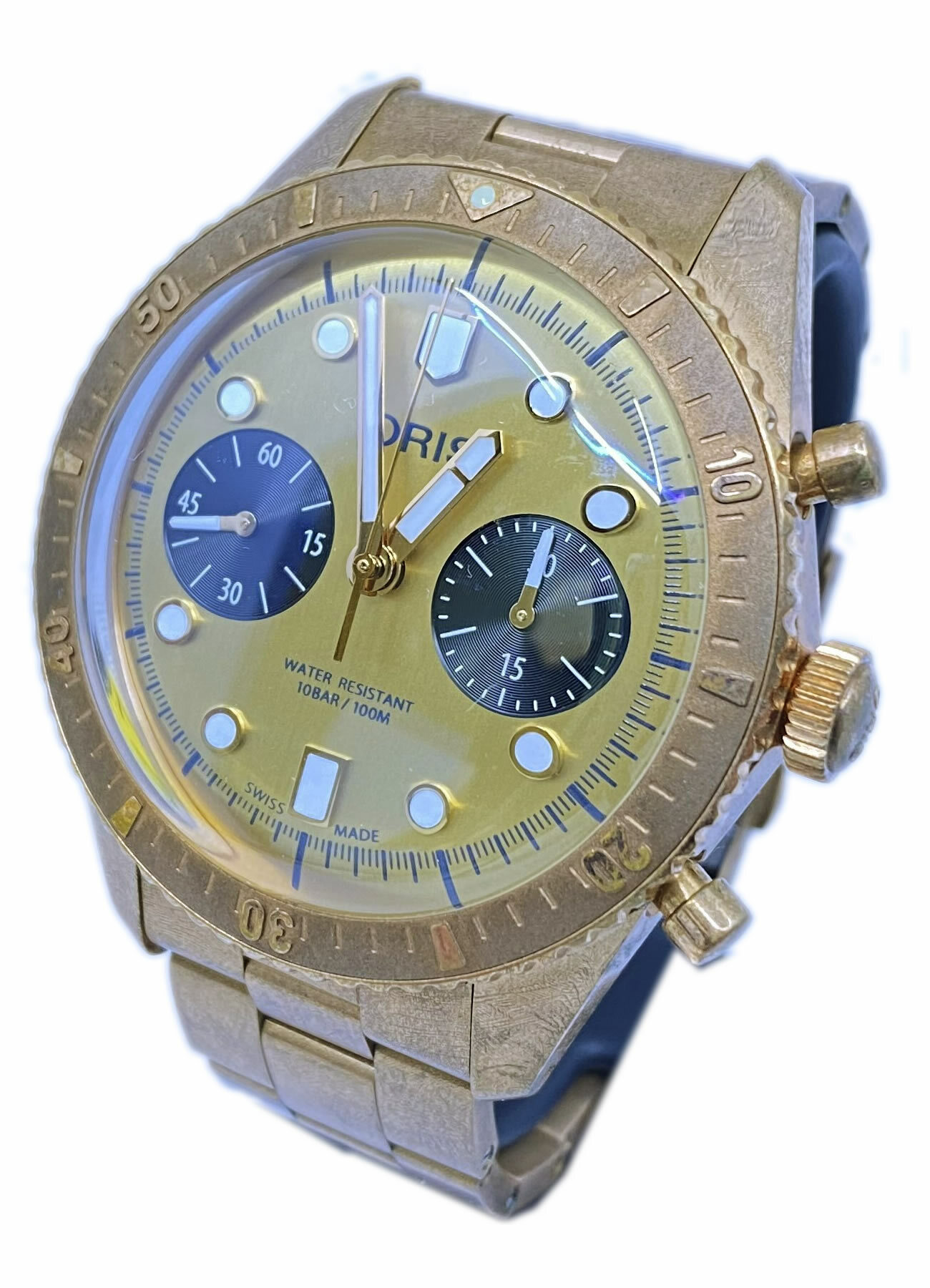 The first in a new series of watches celebrating Oris’s roots in the Swiss village of Hölstein is an all-bronze version of the Divers Sixty-Five Chronograph. The watch’s warm tone is matched by the smiling Oris Bear on the case back. It is limited to 250 pieces.