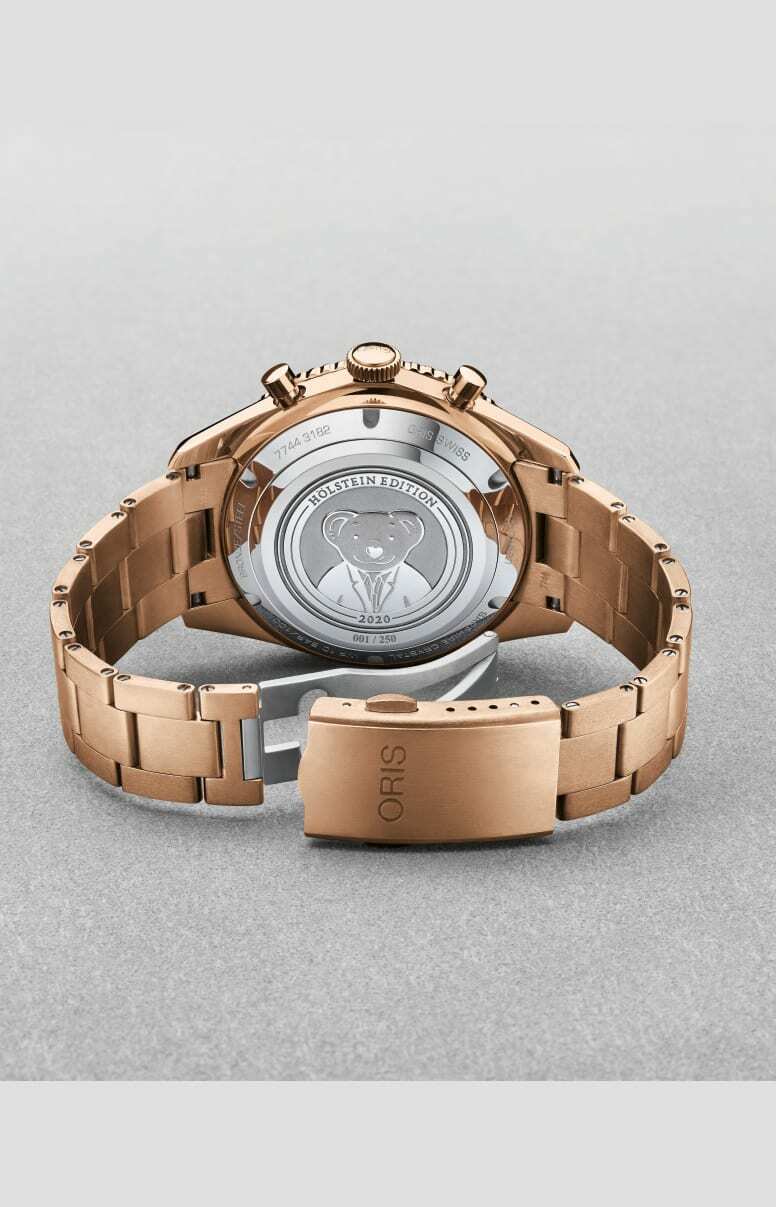 The first in a new series of watches celebrating Oris’s roots in the Swiss village of Hölstein is an all-bronze version of the Divers Sixty-Five Chronograph. The watch’s warm tone is matched by the smiling Oris Bear on the case back. It is limited to 250 pieces.