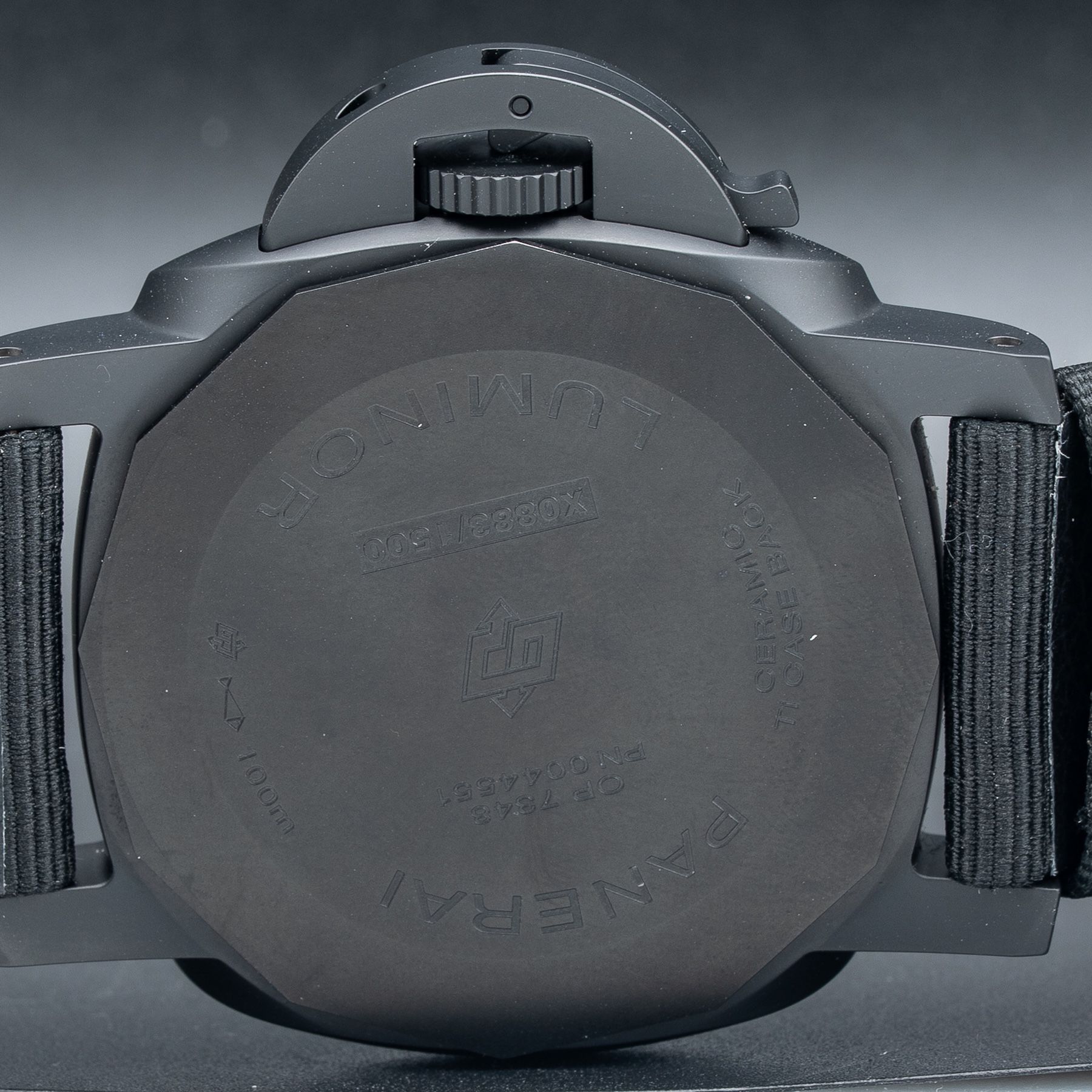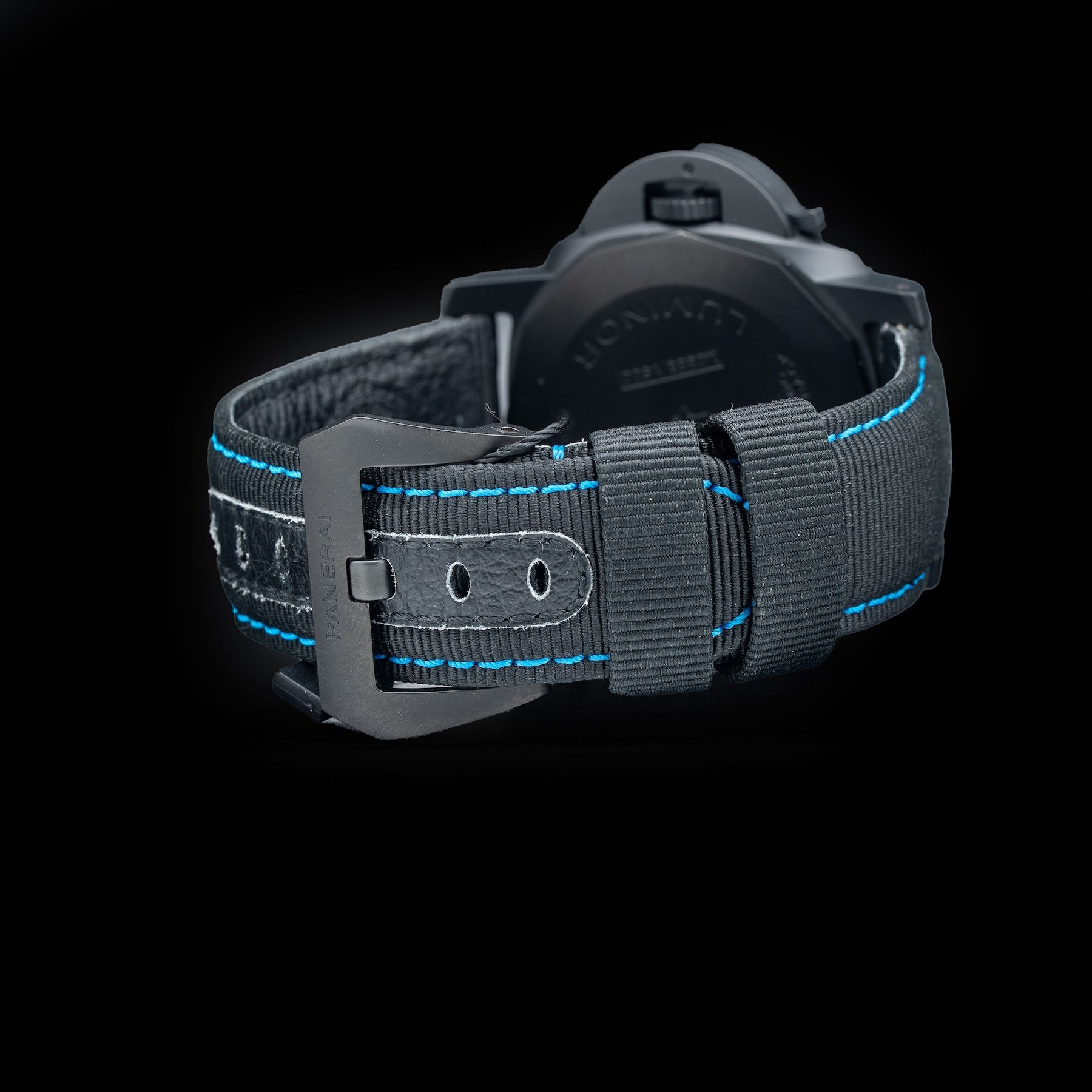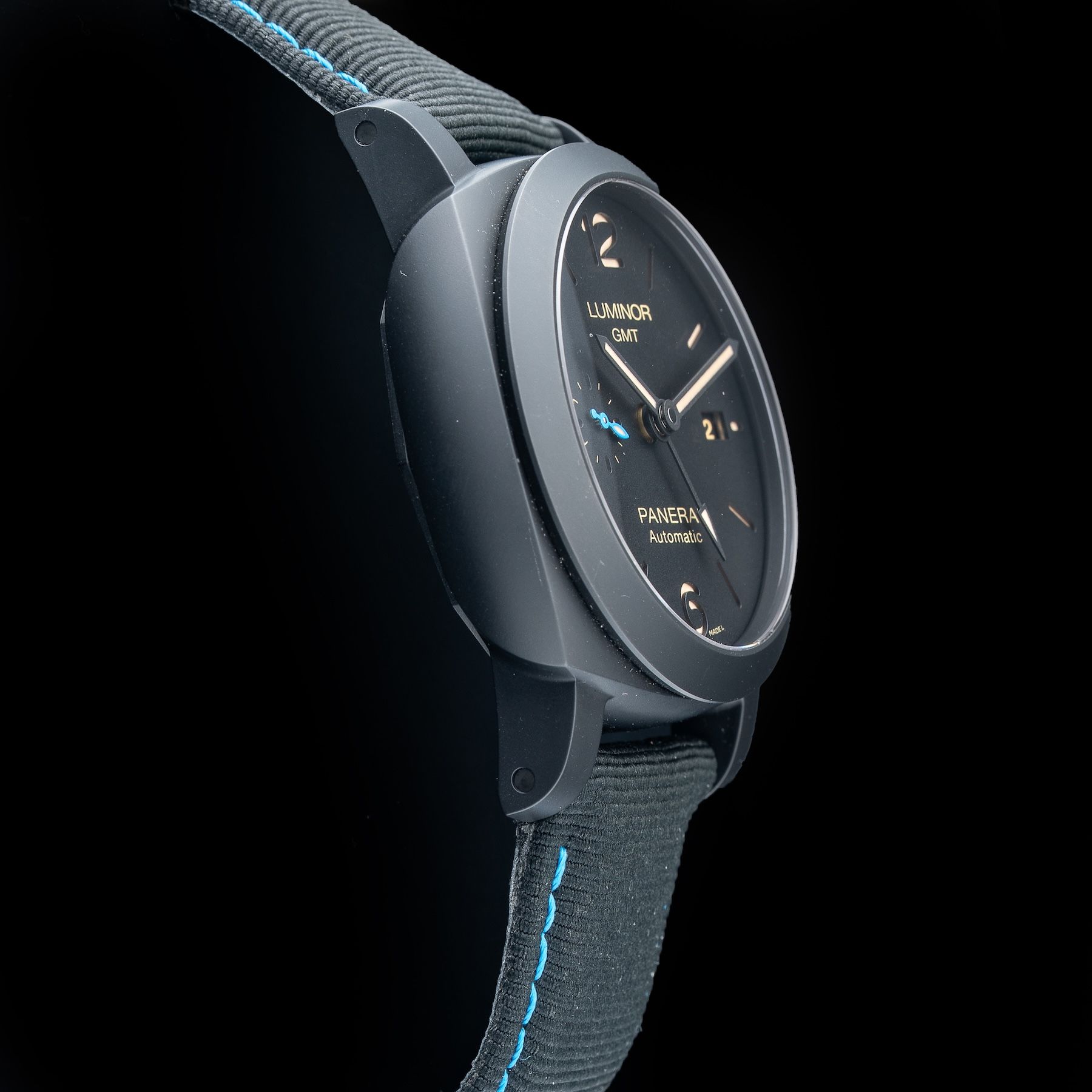 This watch features a 44mm black ceramic case on leather strap. This watch also sports a black dial. Powered by an automatic movement. Water resistance up to 100 meters.
