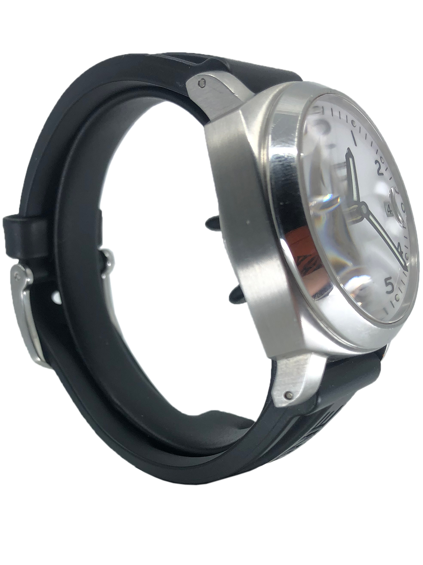 This watch features a 40mm stainless steel case on rubber strap . This watch also sports a white dial. Powered by a mechanical automatic movement. Water resistance up to 300 meters.