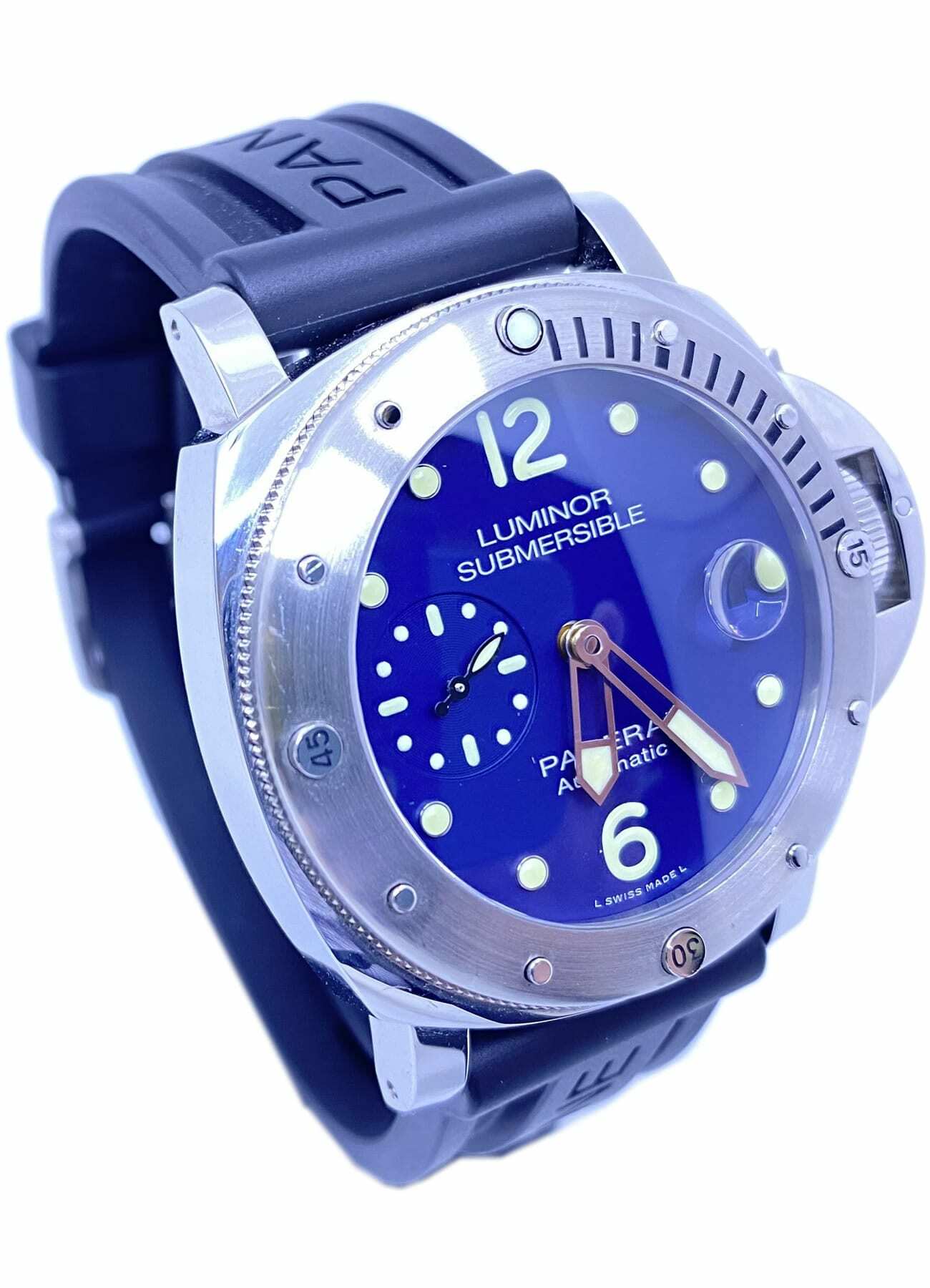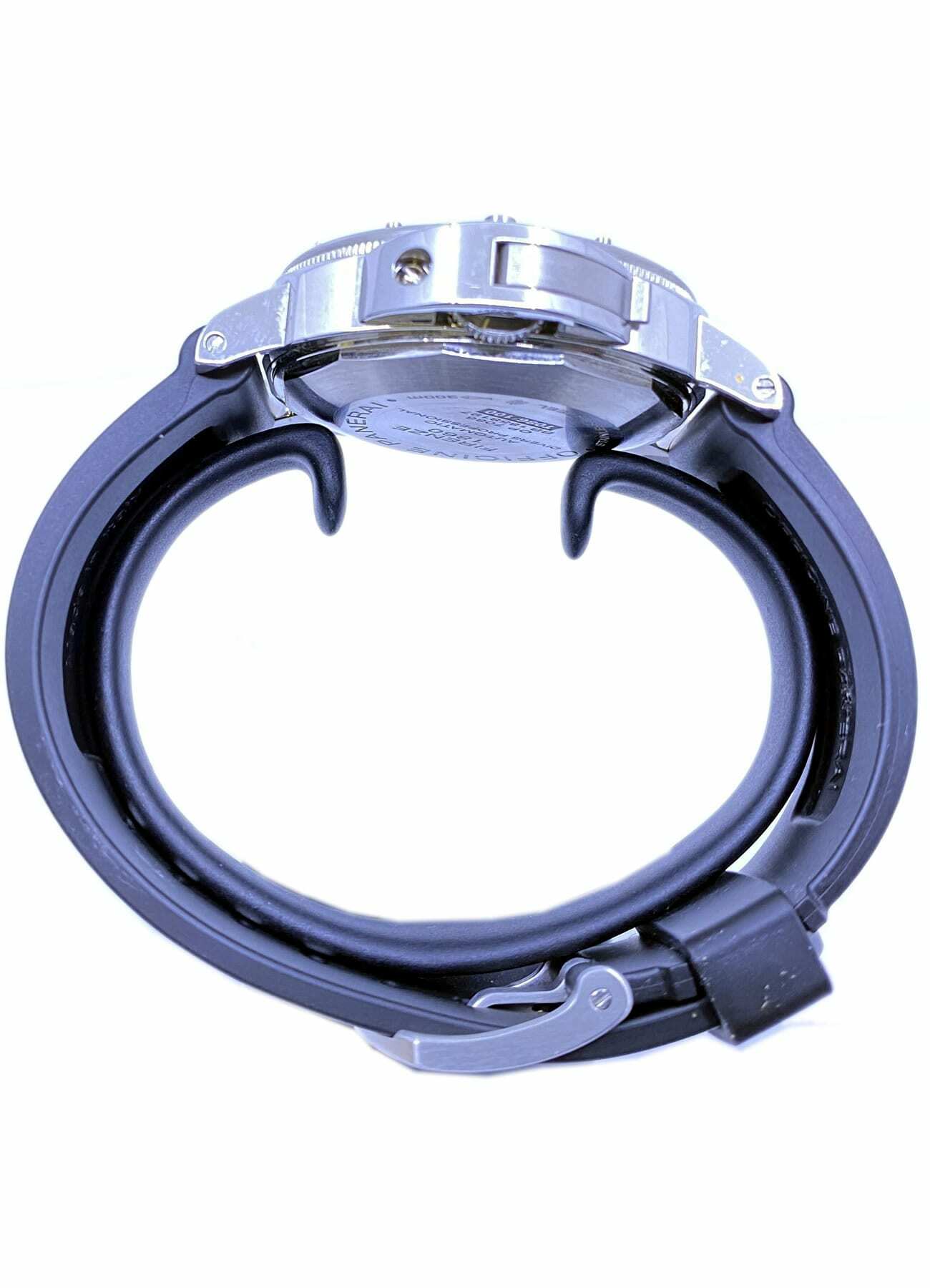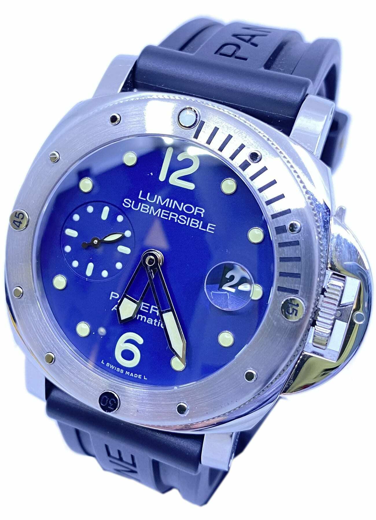 - This timepiece features a 44mm steel case paired with a high quality rubber strap. It showcases a distinctive blue dial and is powered by a precise automatic winding movement. The watch is designed with a water resistance of up to 300m.