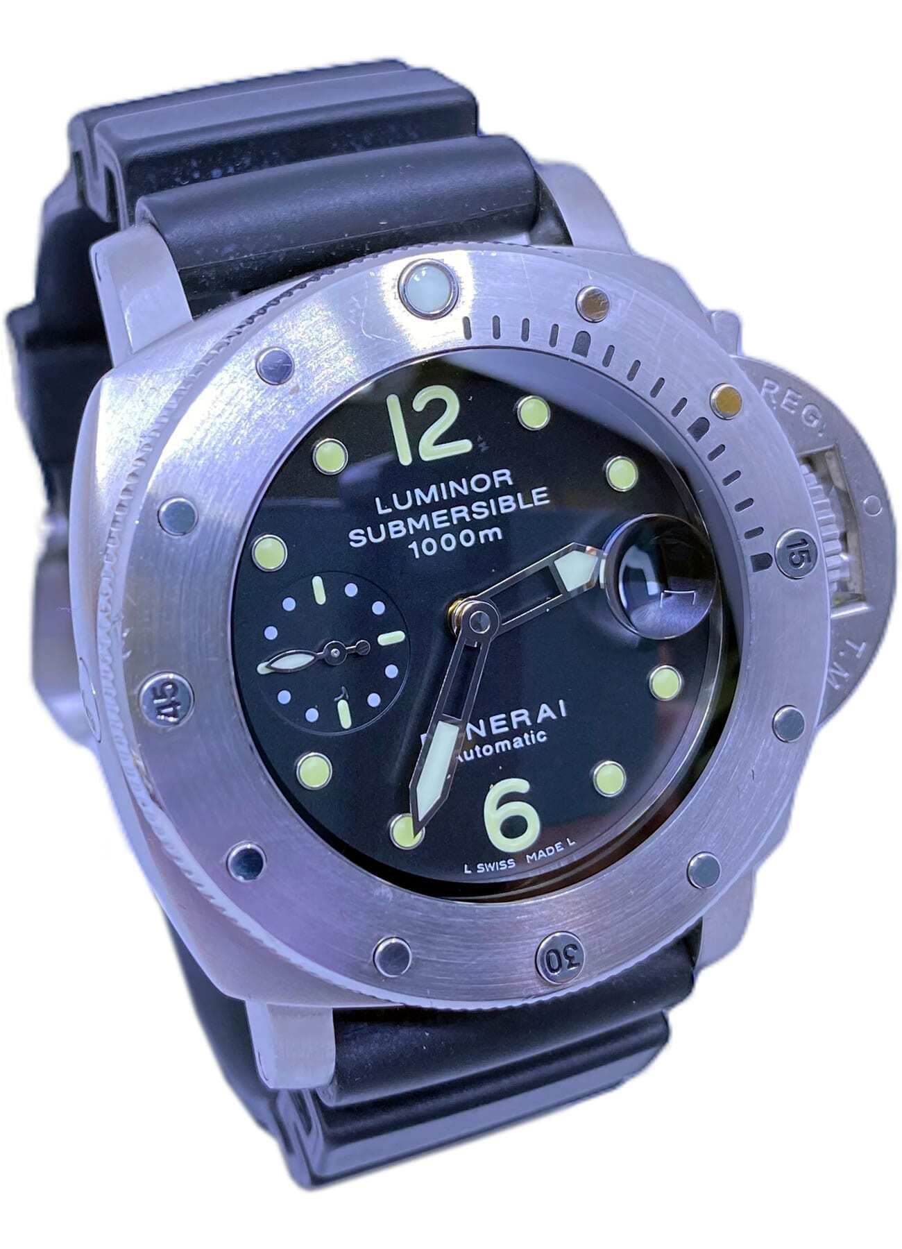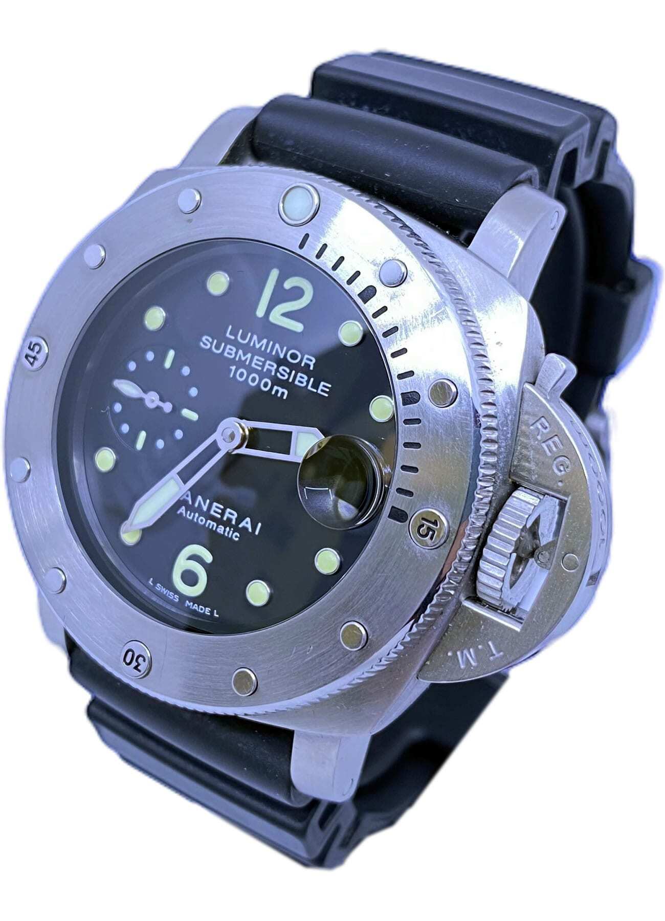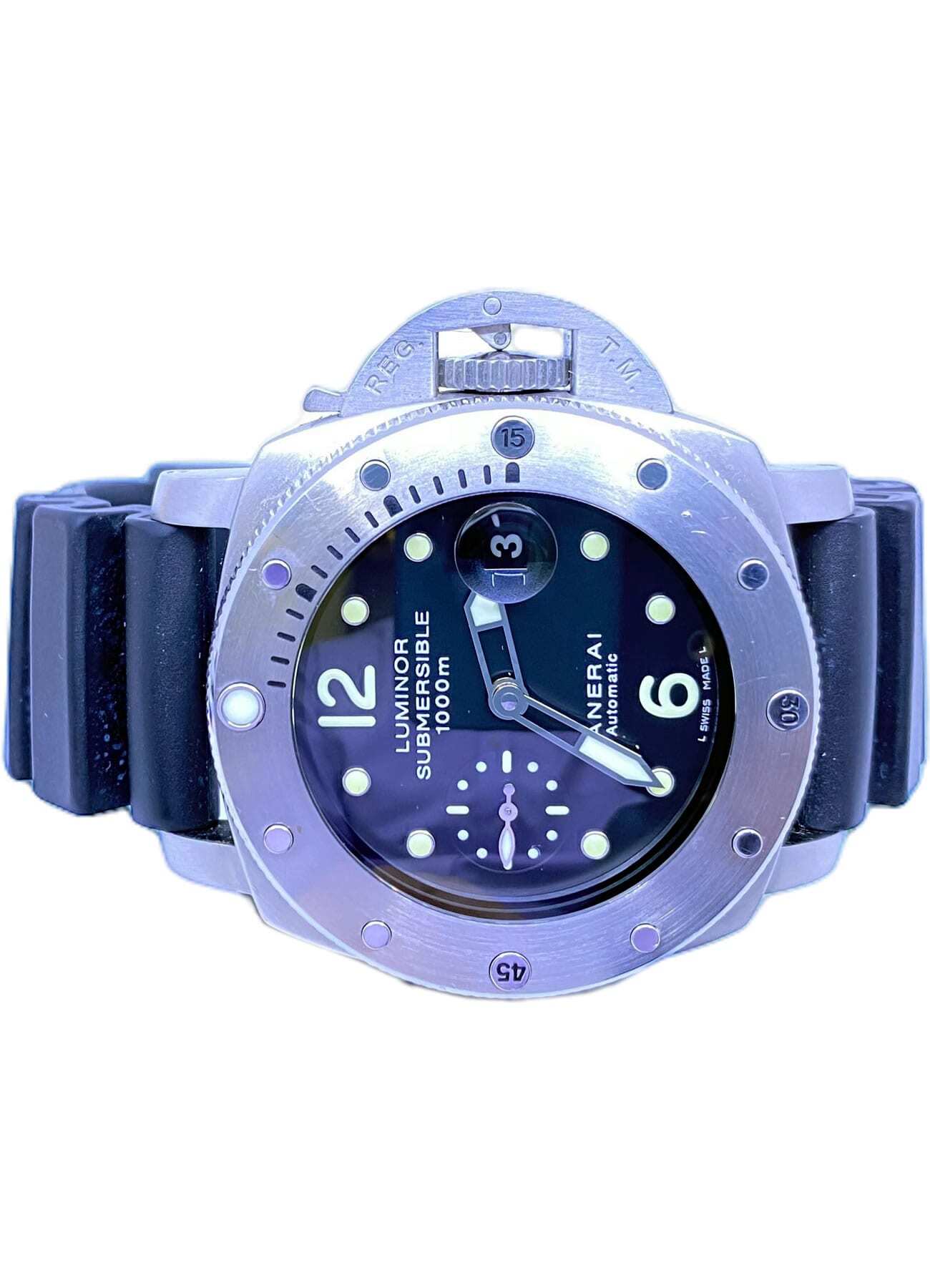 - This timepiece features a 44mm steel case paired with a high quality rubber strap. It showcases a distinctive black dial and is powered by a precise automatic winding movement. The watch is designed with a water resistance of up to 1000m.