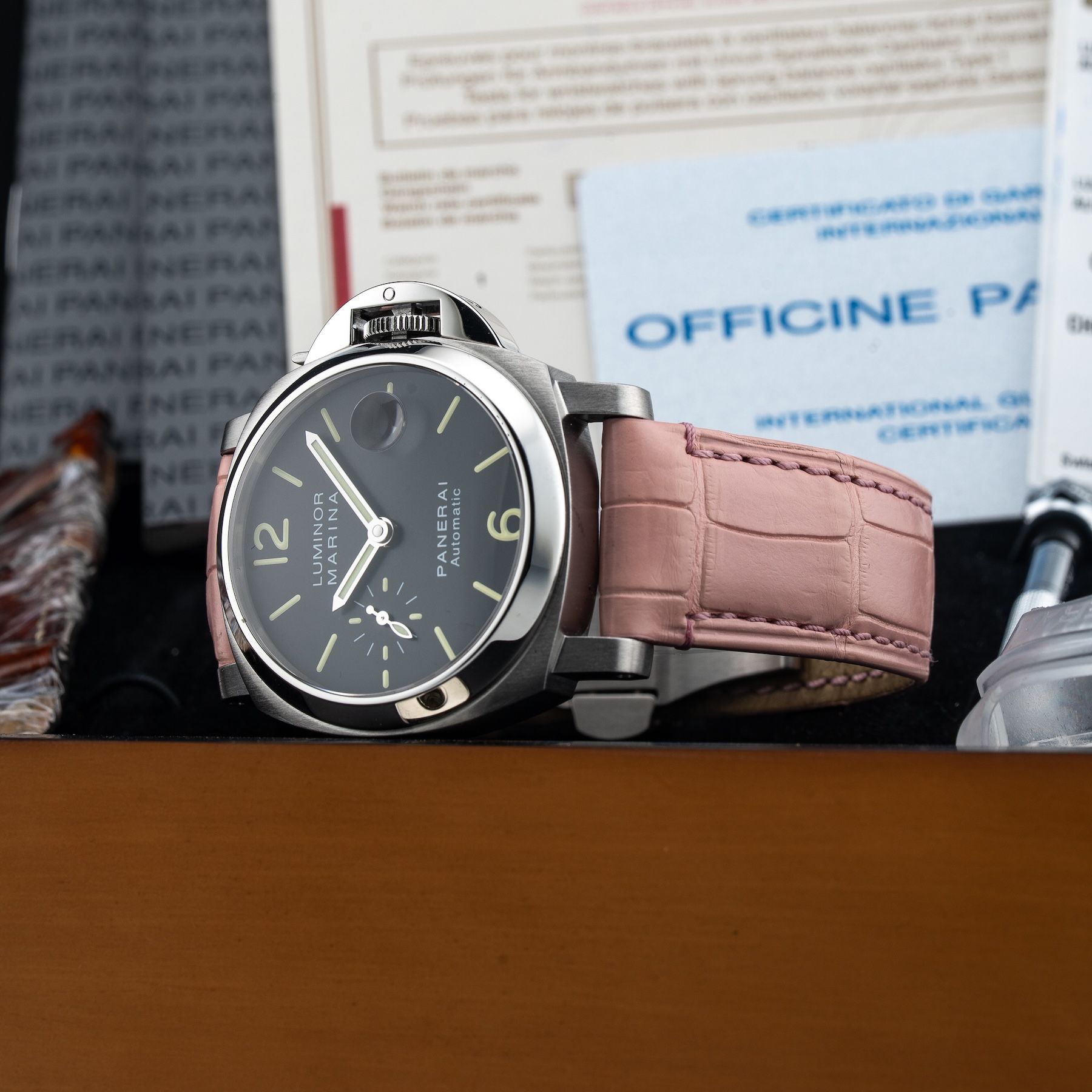 This Panerai PAM00048 Luminor Marina Acciaio 40mm is in GREAT condition. This watch includes its Original Box, Original Papers, and Warranty Card Dated 12/25/2014, Leather Strap Included in Box.This watch has been fully authenticated and certified by Exquisite Timepieces. Please note, the photos shown are of the actual watch you will receive.