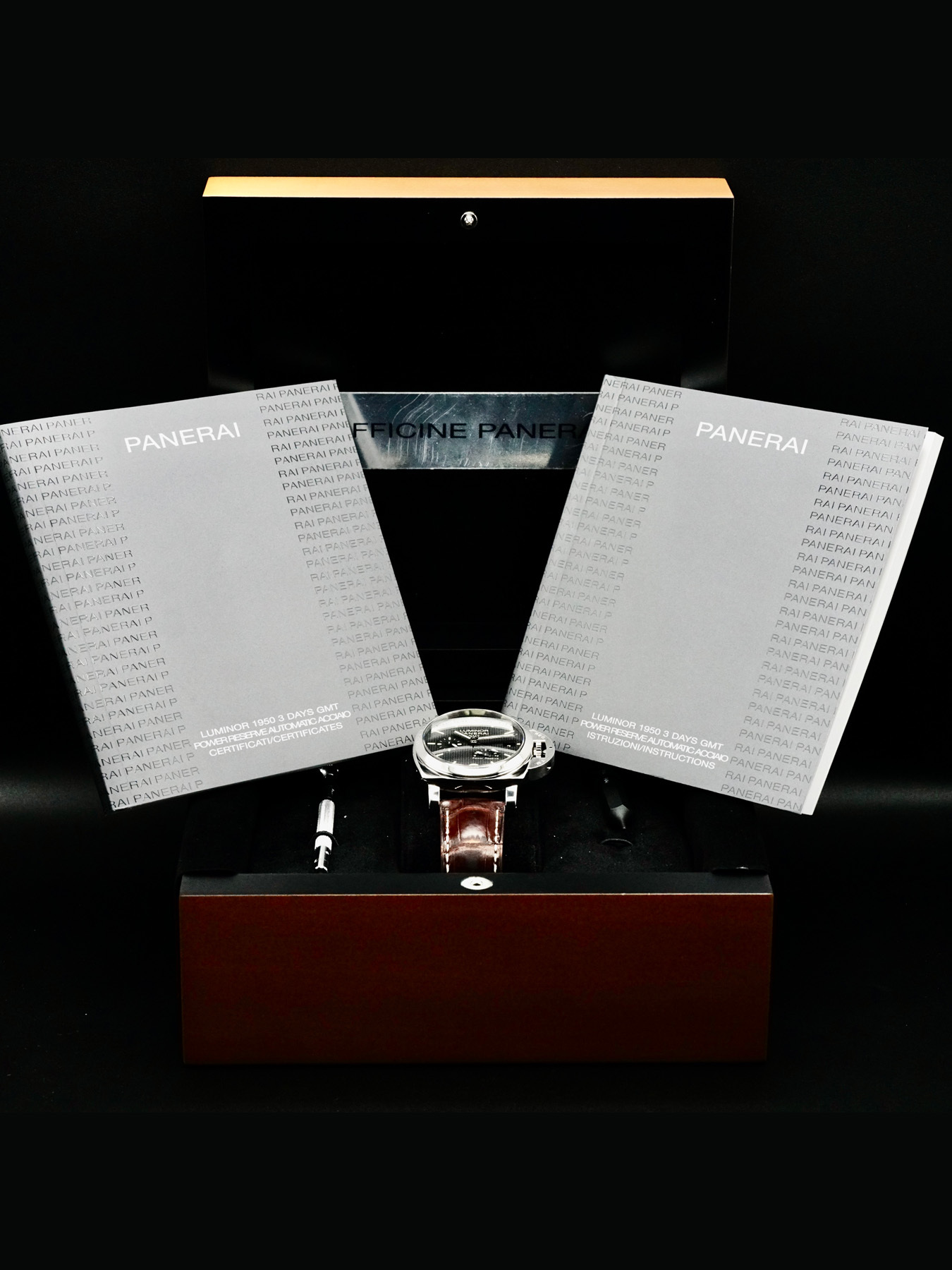 This Panerai PAM00537 Luminor 1950 GMT 42mm is in GREAT condition. This watch includes its original box, instruction booklet and warranty card dated 2015. This watch has been fully authenticated and certified by Exquisite Timepieces.