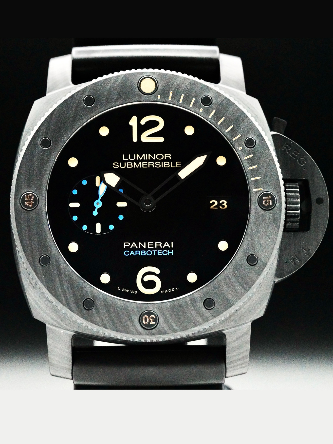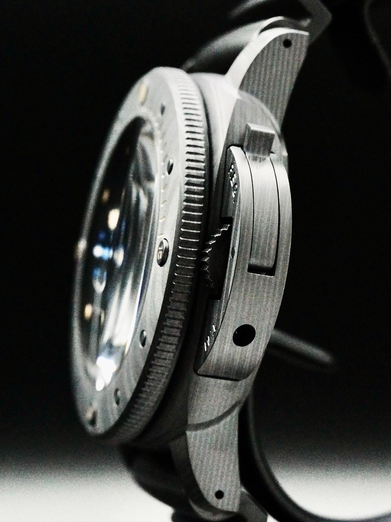This watch features a 47 mm carbotech case on rubber strap. This watch also sports a black dial. Powered by a mechanical automatic movement. Water resistance up to 300 meters.