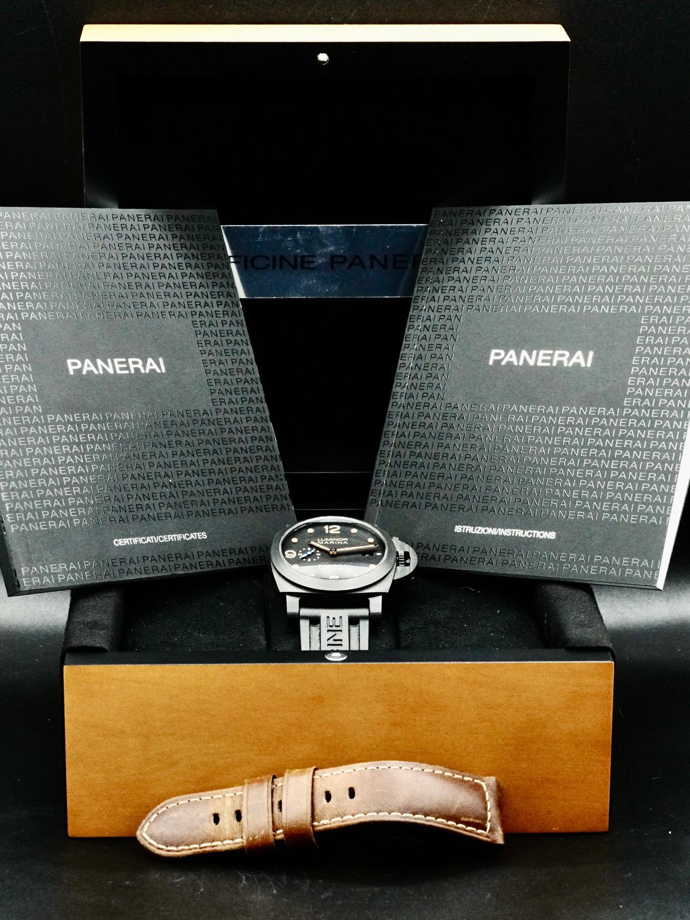 This Panerai Luminor Marina Carbotech PAM00661 is in EXCELLENT condition. This watch includes its original box, instruction manual, and guarantee certificate dated for August 2018. Extra brown leather strap.
