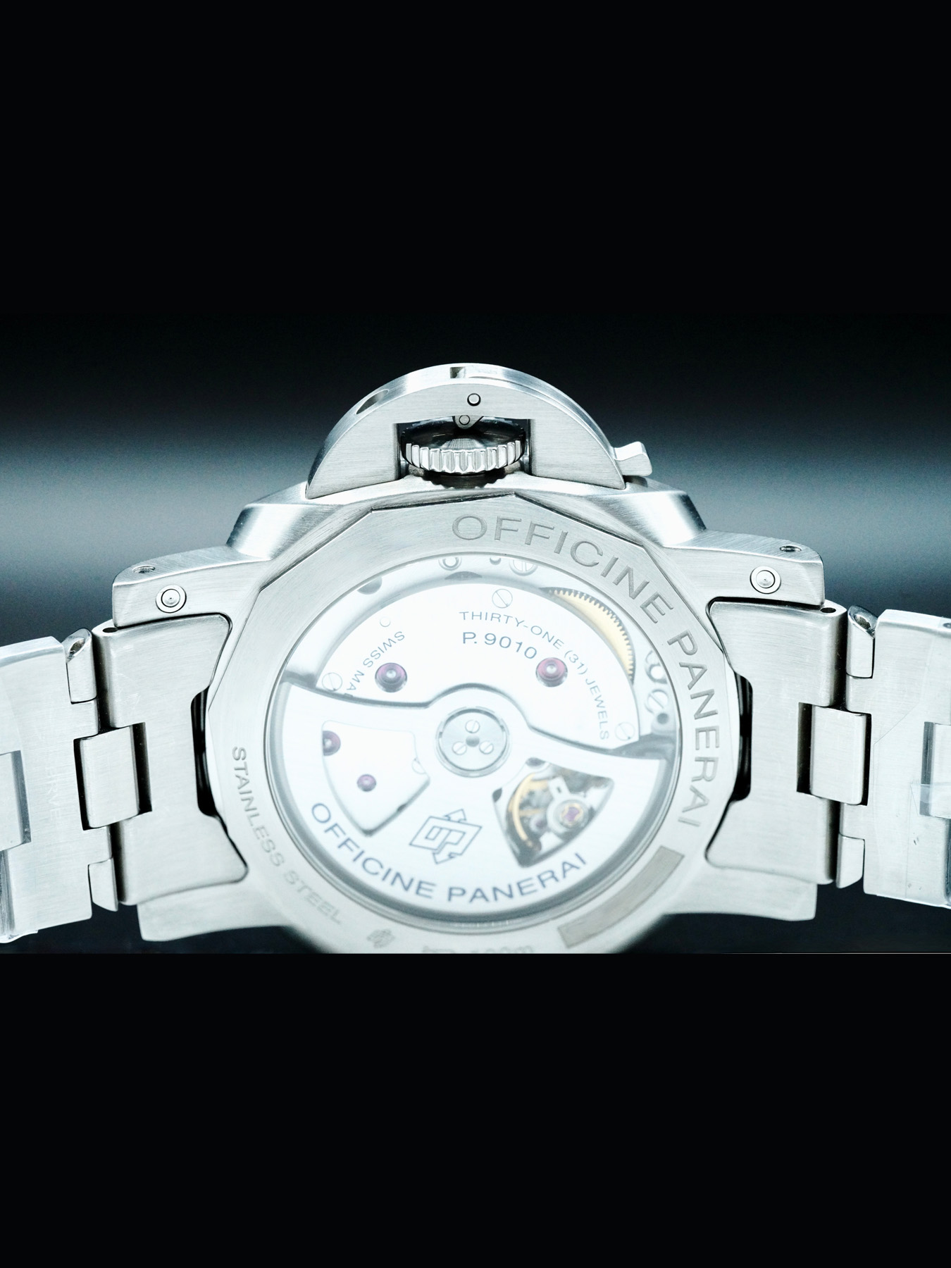 Automatic movement powered by Panerai Calibre P.9010 with a power reserve of approximately 3 days. Water resistance up to 100 meters.