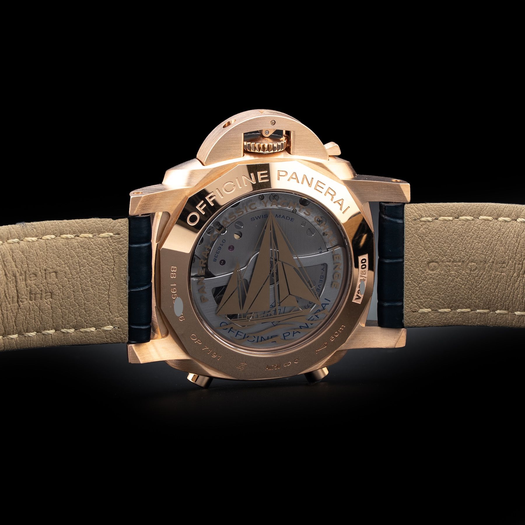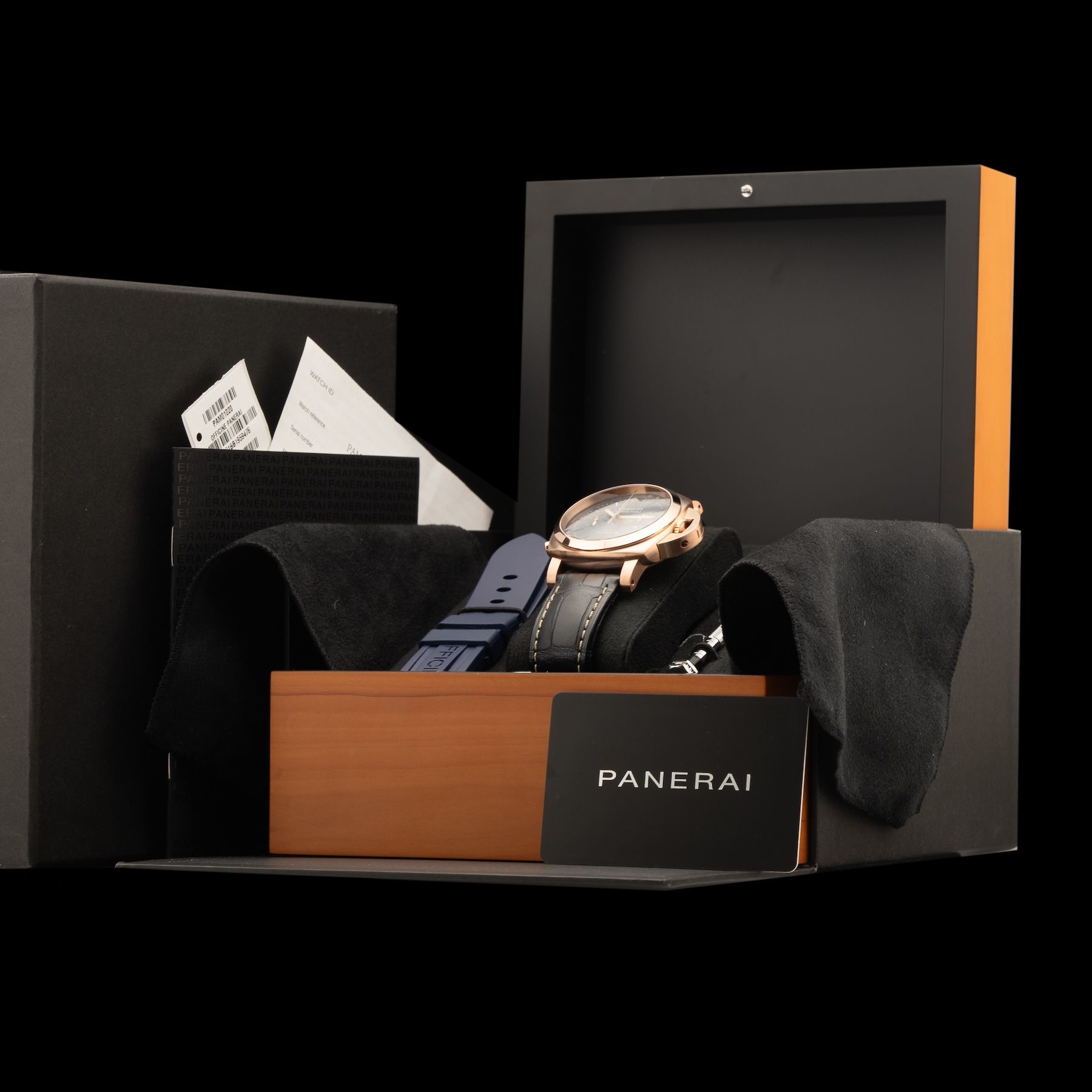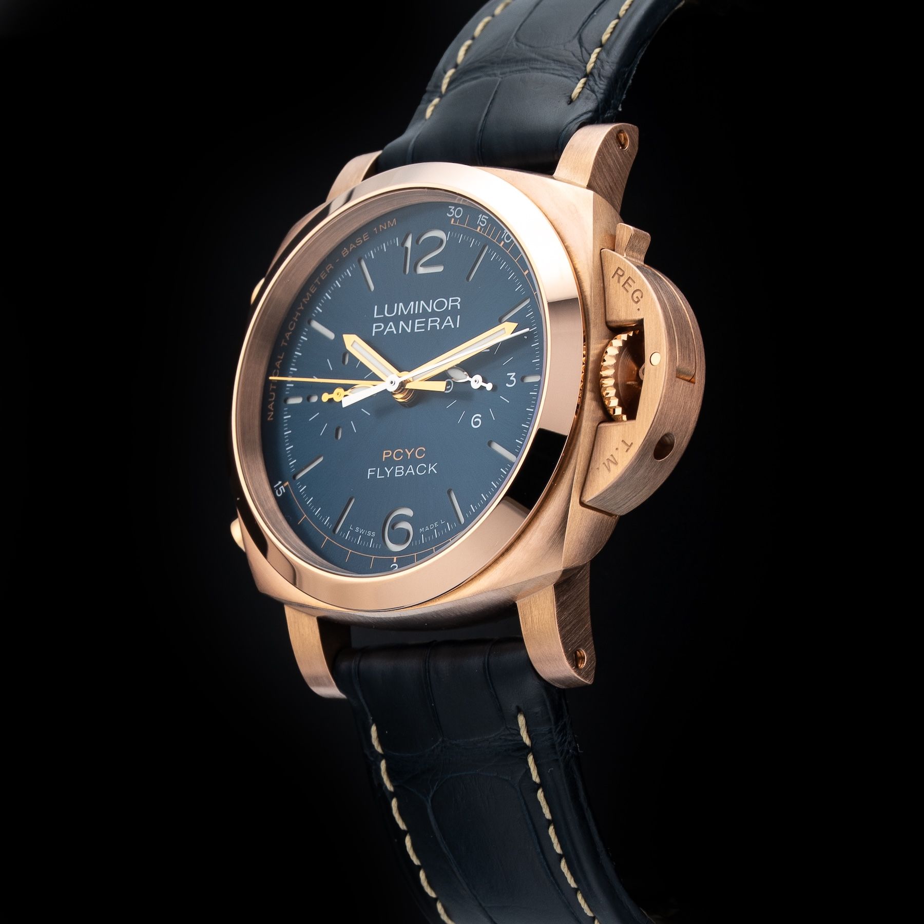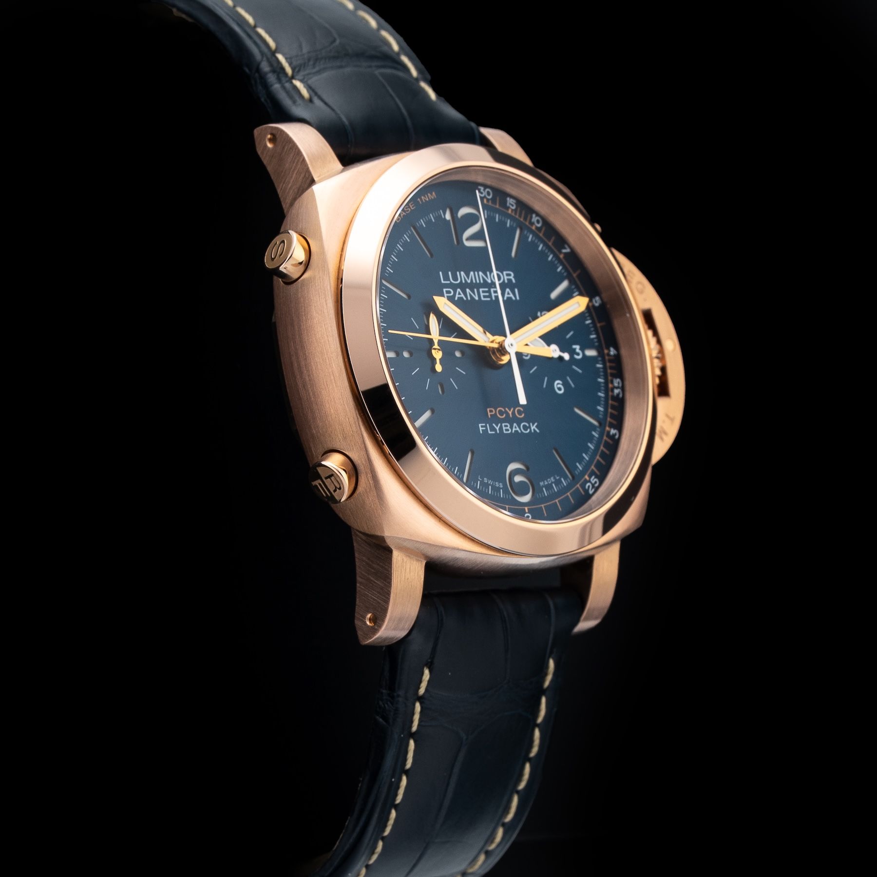 This Panerai PAM01020 Luminor Yachts Challenge 18K Rose Gold Blue Dial is in GREAT condition. This watch includes its Original Box, Original Papers and Warranty Card Dated 01/20. This watch has been fully authenticated and certified by Exquisite Timepieces.