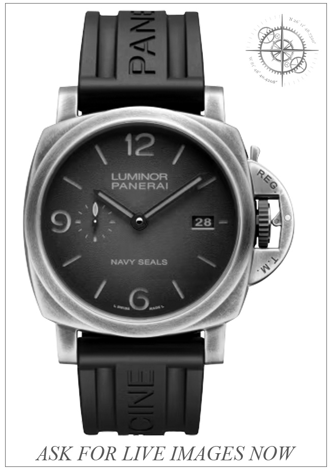 This watch features a 44 brunito steel case on caoutchouc black strap. This watch also sports a green shaded dial. Powered by a mechanical automatic movement. Water resistance up to 300 meters.