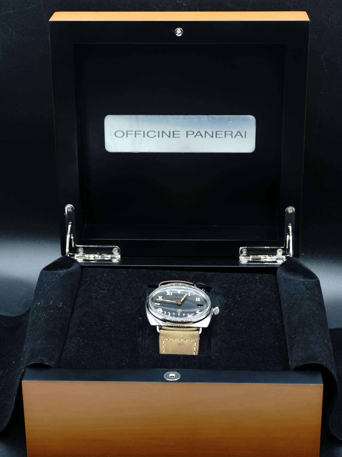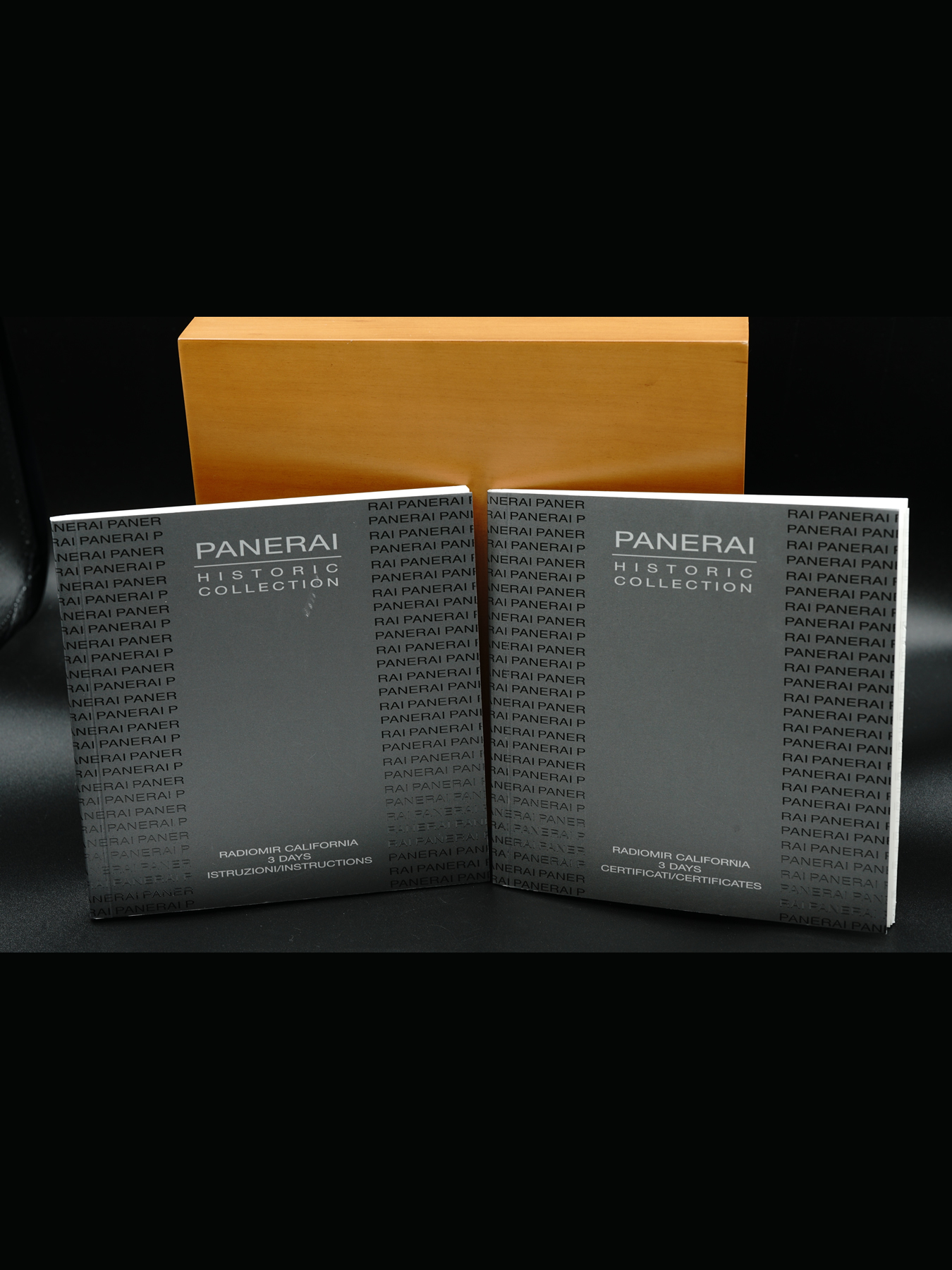 This Panerai Radiomir California 3 Days Acciaio 47mm is in EXCELLENT condition. This watch features a stainless steel case with a brown leather strap. Tang clasp. Black dial. Water resistant up to 100 meters. Includes original box, papers, and guarantee certificate dated June 2013.