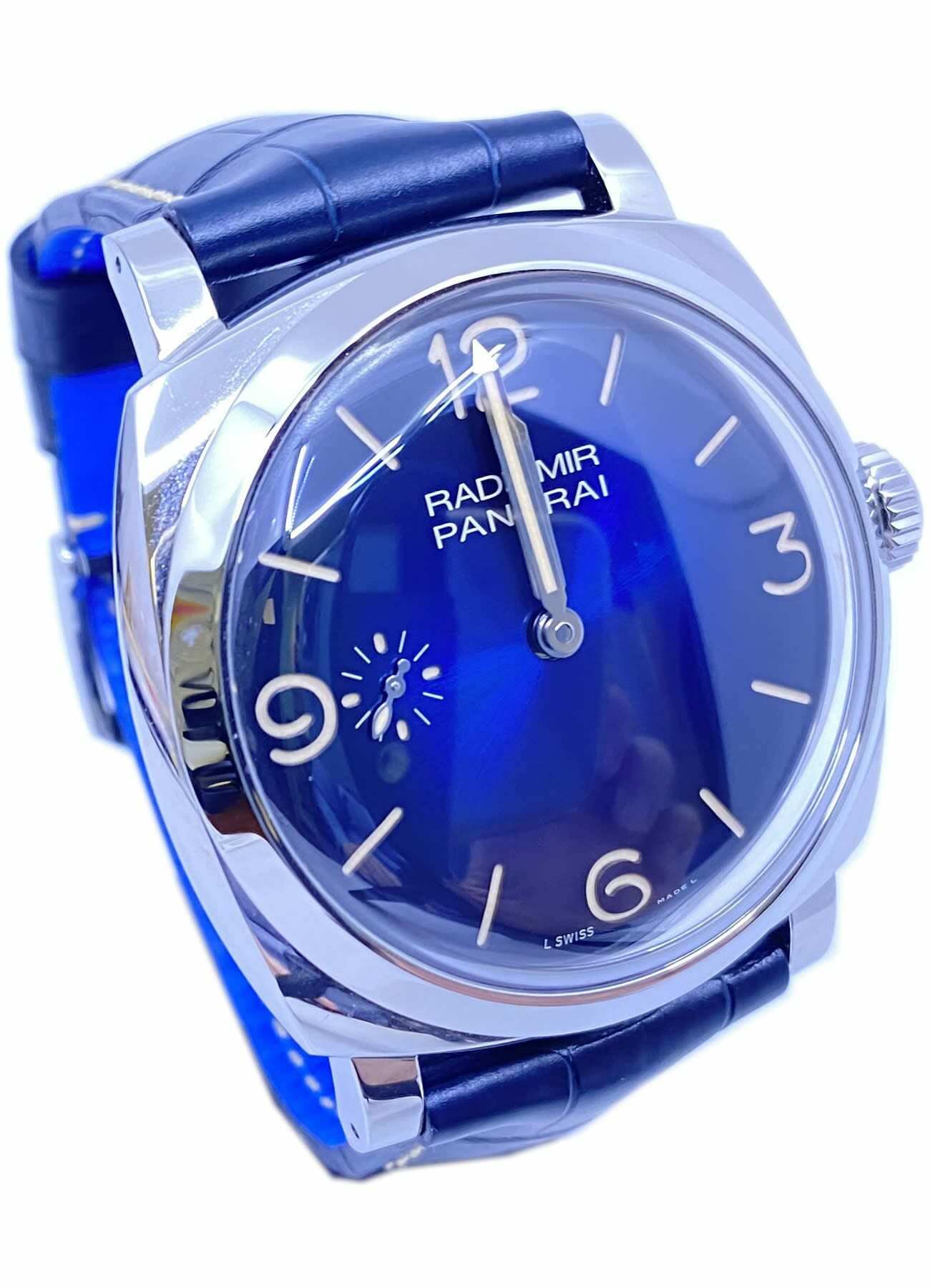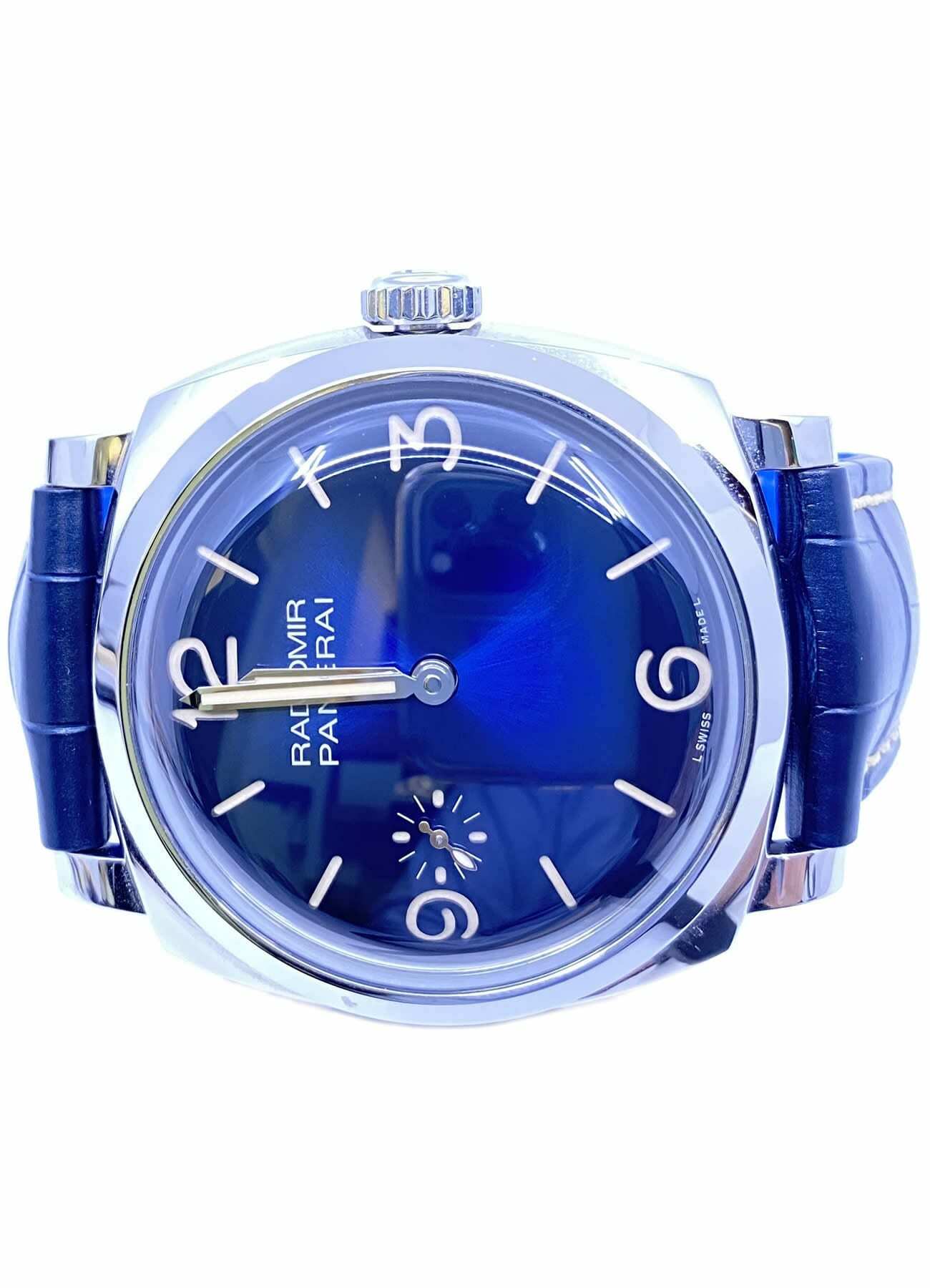 The "Pre-owned Panerai Radiomir PAM00932" is an elegant and high-quality men's watch that features a durable AISI 316L polished steel case, an exhibition case back, and a case width of 47mm. The blue dial is protected by a scratch-resistant sapphire crystal and features luminous hands and index markers for easy readability.