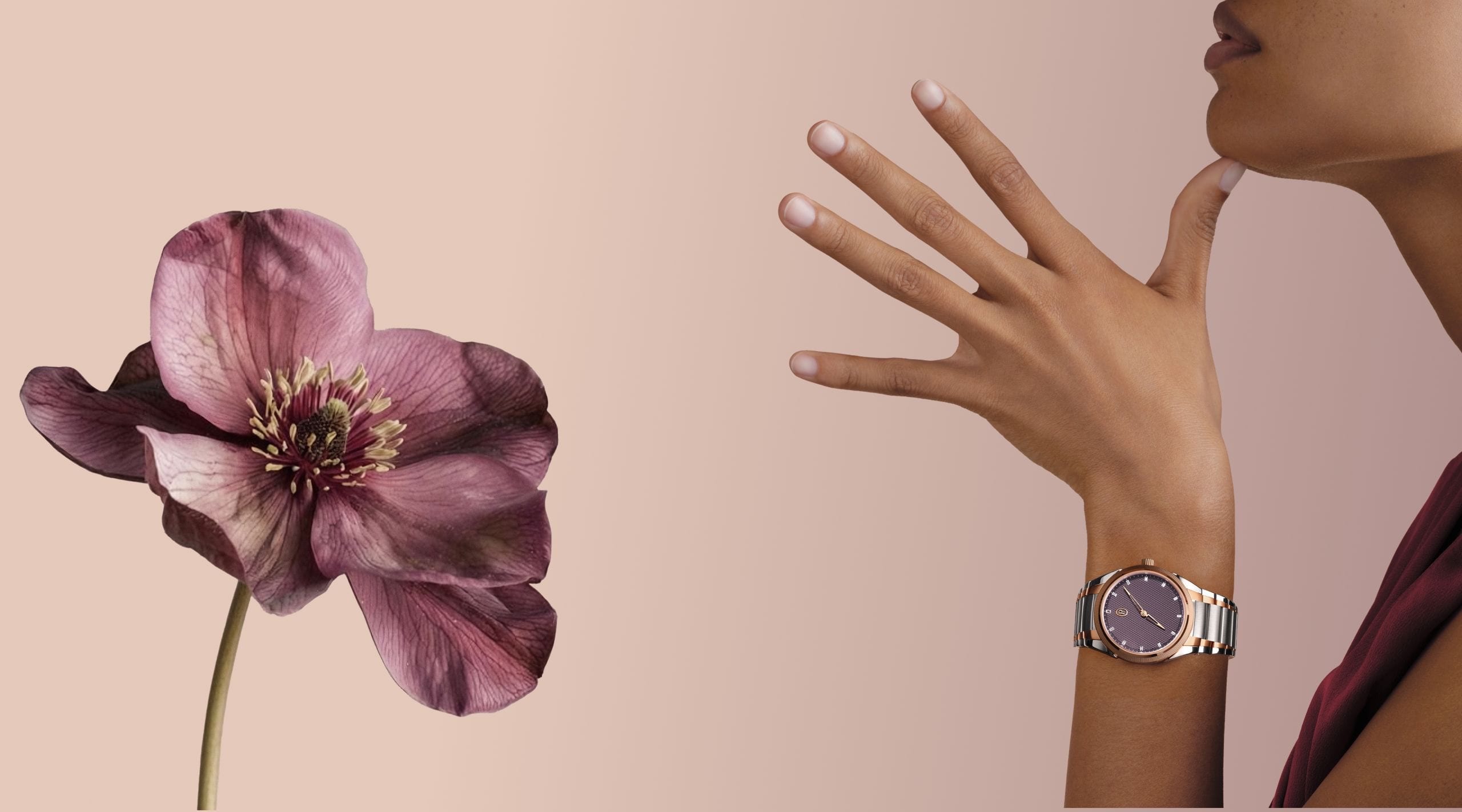 Crafted in stainless steel and 18-carat rose gold, this latest edition captivates with its Deep Ruby dial and baguette-cut diamond indices, a perfect balance of contemporary elegance and refined character.