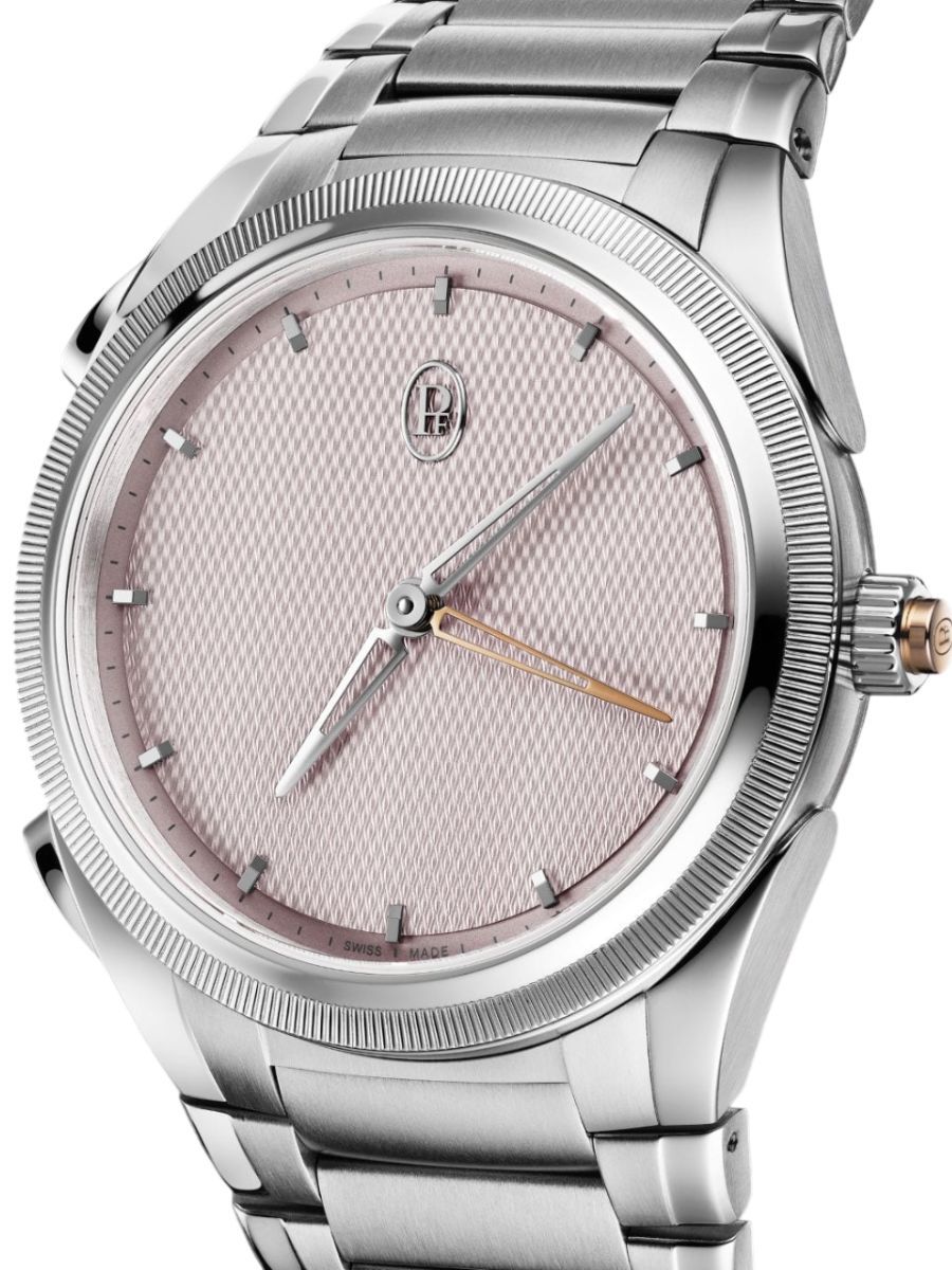 The dial’s Grain d’Orge guilloché amplifies this effect. Its ultra-fine geometry behaves like a diffraction surface, giving the Arctic Rose tone depth, texture, and a quiet radiance unique to the Maison’s craft. Paired with the platinum knurled bezel and the fluid ergonomics of the TONDA PF, the Arctic Rose dial becomes a signature: a modern, cultured expression of elegance shaped by proportion and by light.