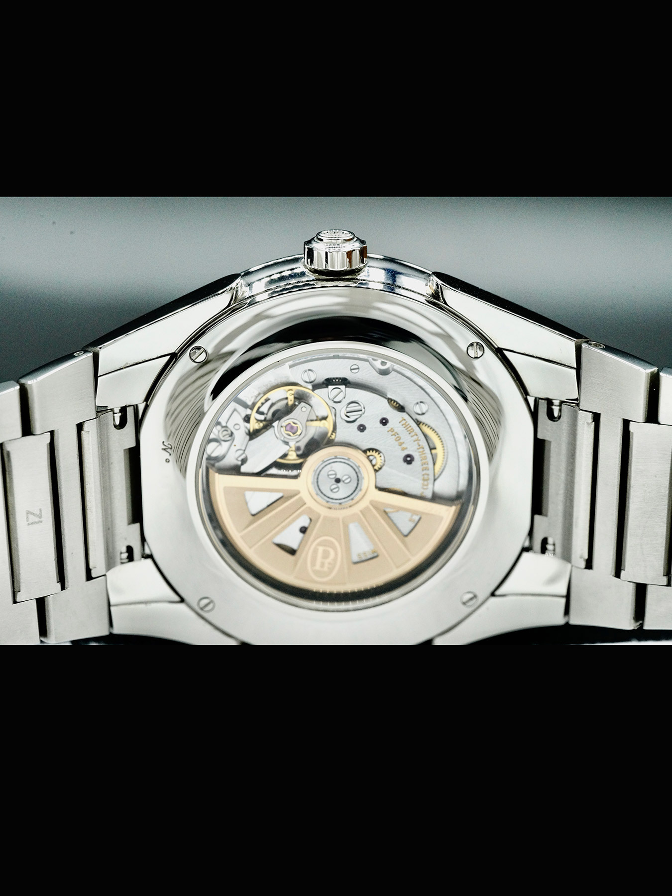 Mechanical Automatic movement powered by Parmigiani Fleurier Caliber PF044. Water resistant up to 100 meters.