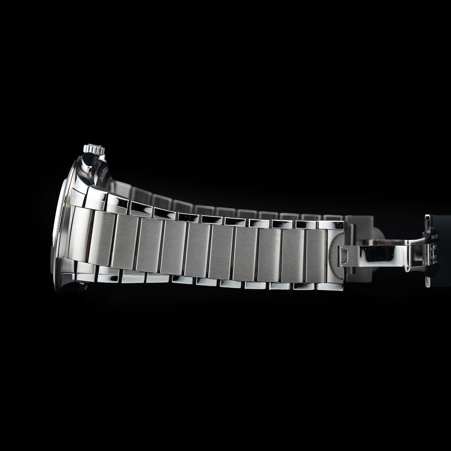 This watch features a 42mm steel case on steel bracelet. This watch also sports a green dial. Powered by an automatic movement. Water resistance up to 100 meters.