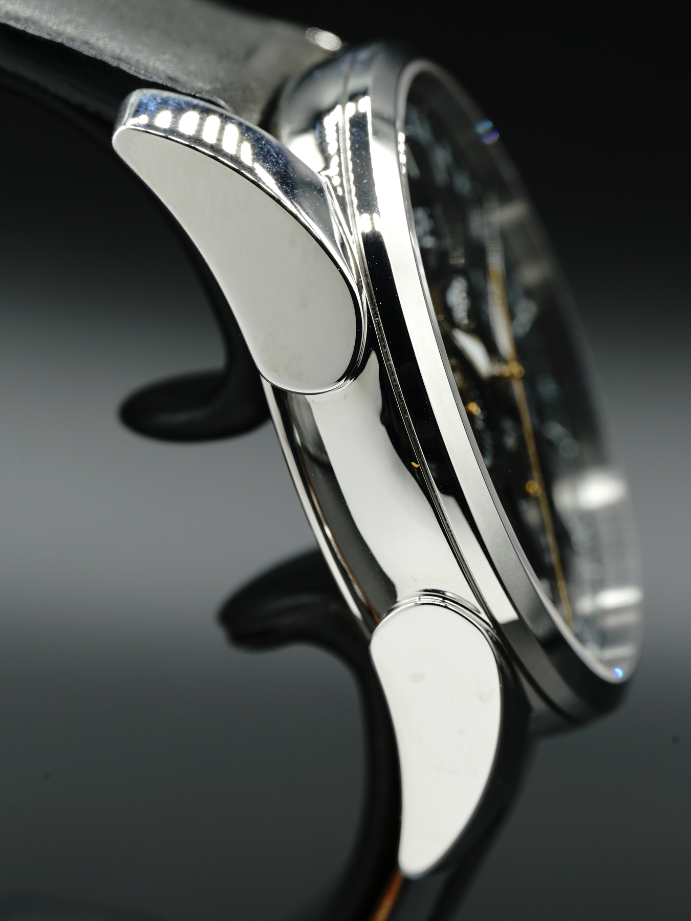 The Métrographe is one of the flagship watches in the Tonda line. Through their striking presence, the hour and minute counters bring to life the brilliant silver white dial with blue hands, or oxidised black with a powdered rose gold decal. Forming a figure of 8, the counters are bordered by a slightly raised edge.