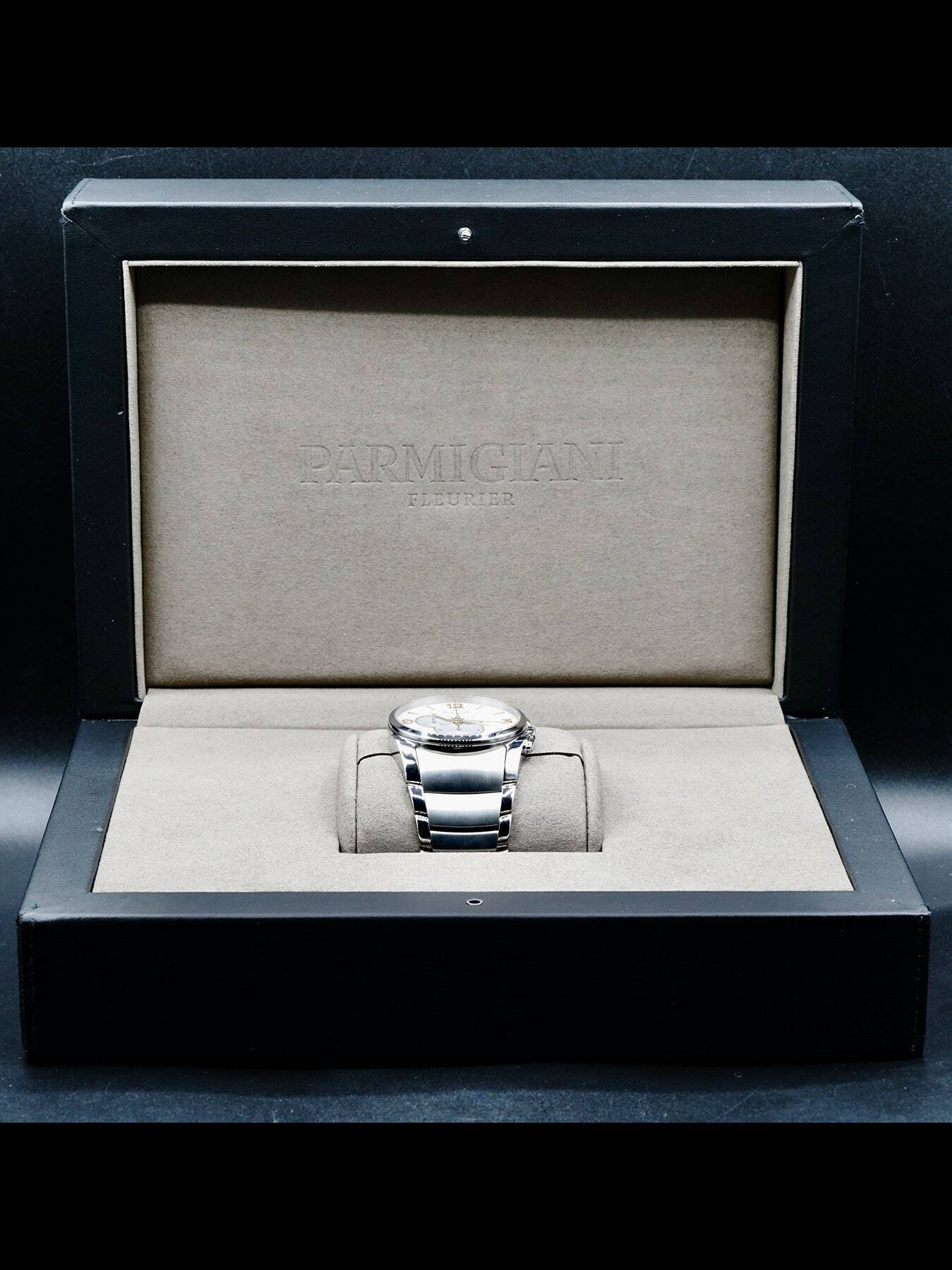 This Parmigiani Fleurier Tonda Metrographe PFC274-0002400-B33002 is in EXCELLENT condition. This watch includes its original box, user guide, and international warranty card dated for December 2021. Extra stainless steel bracelet links.
