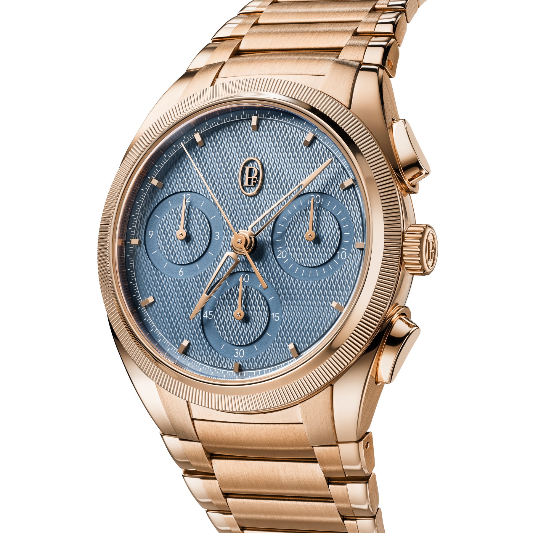 In 40 mm, the TONDA PF Chronograph reaches a more immediate equilibrium on the wrist. Paired with 18-carat rose gold, it introduces a warmer and more tactile expression within the collection.