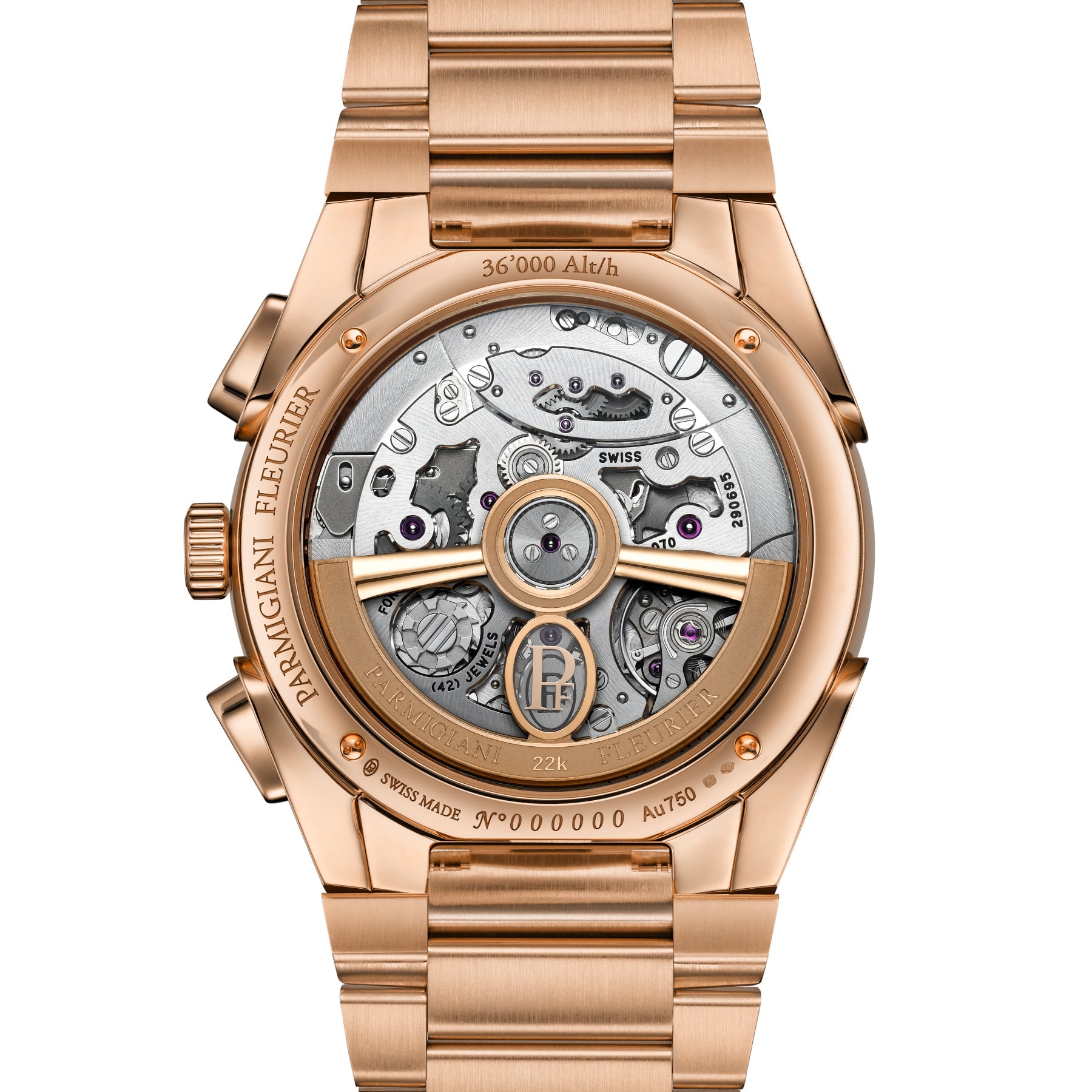 Inside, a high-frequency integrated movement, COSC-certified, delivers precision to one-tenth of a second.