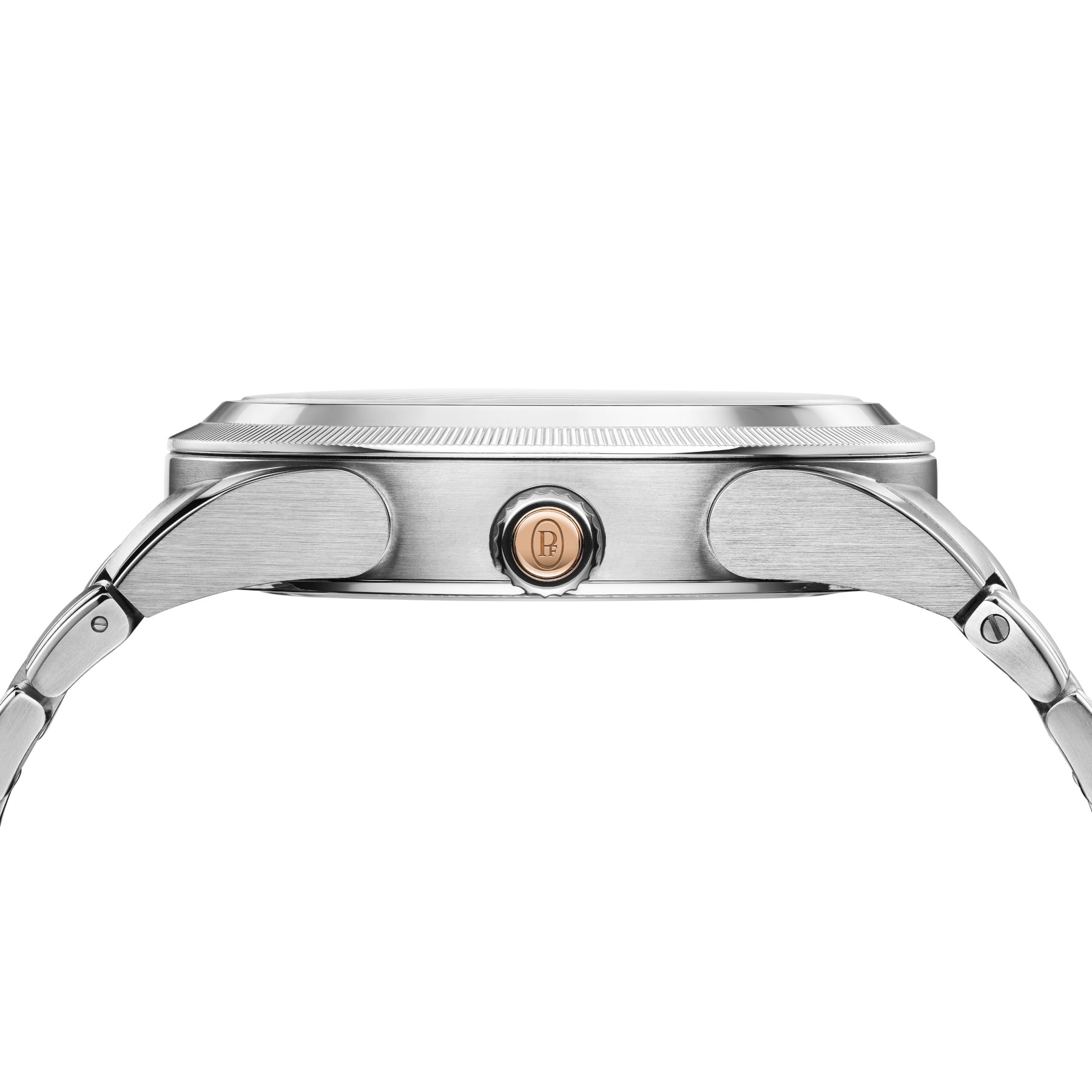 Inspired by the “scuba” function, The TONDA PF Minute Rattrapante measures short intervals without disturbing the calm of the dial. A discreet hand appears on demand, tracks the elapsed minutes, then returns to merge with the primary hand and disappear.
