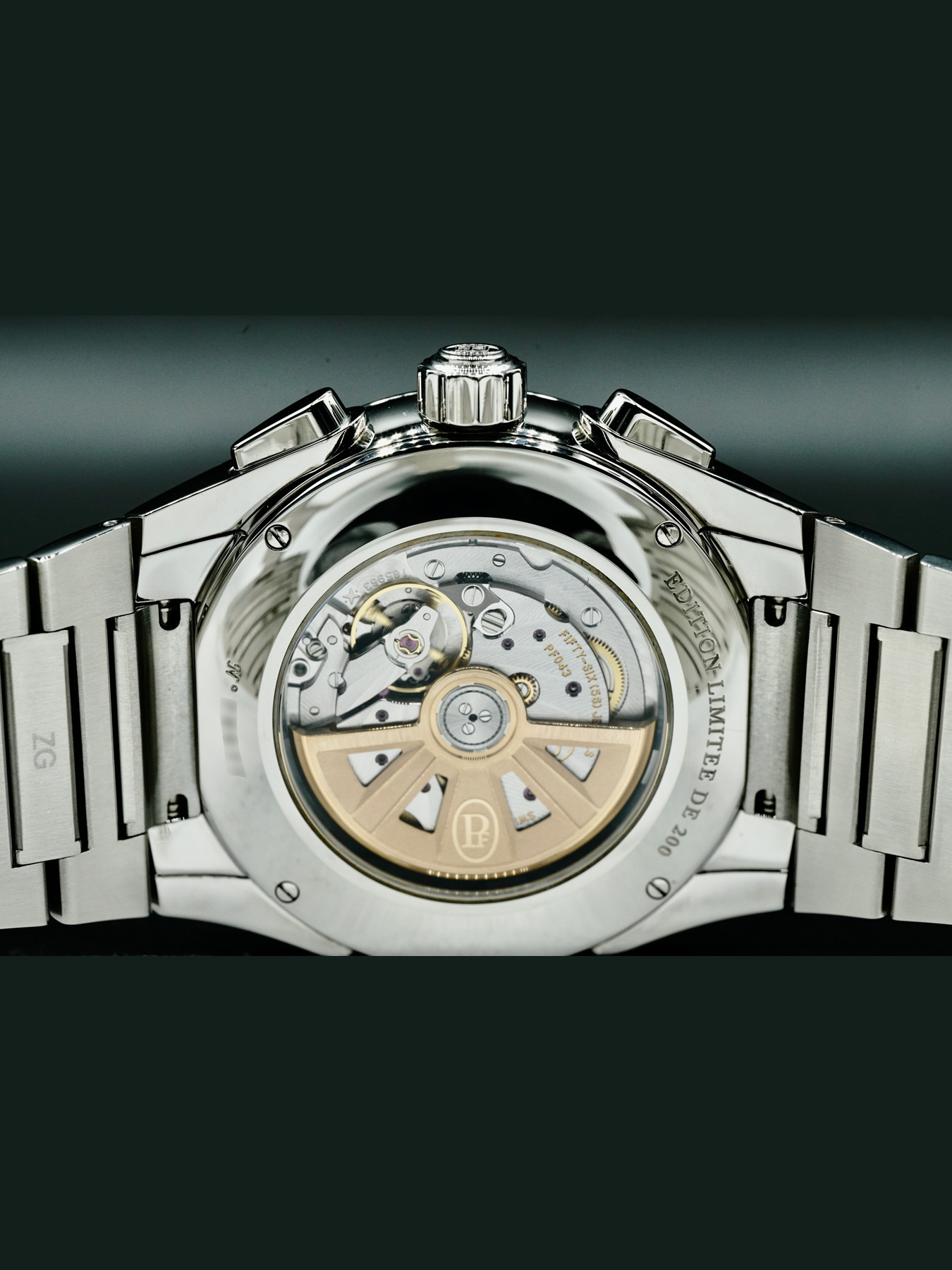 Automatic movement powered by Parmigiani Fleurier Caliber PF043. Water resistance up to 100 meters.