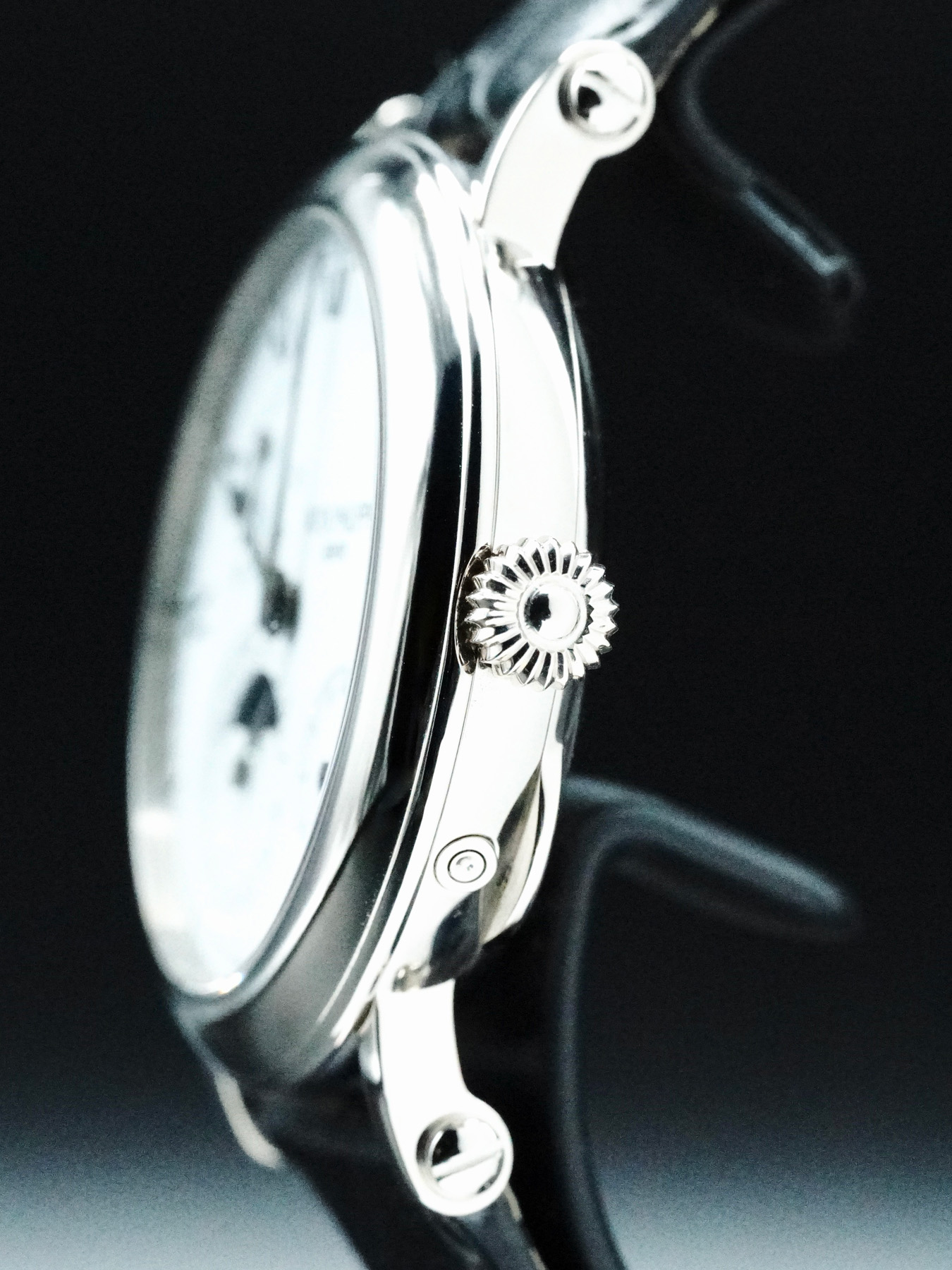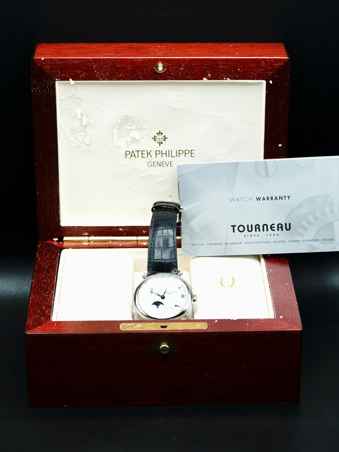 This Patek Philippe 5054J-001 Power Reserve Moon Phase is in EXCELLENT condition. This watch includes its Original Box and Tourneau Warranty Card Dated for 2001. This watch has been fully authenticated and certified by Exquisite Timepieces.