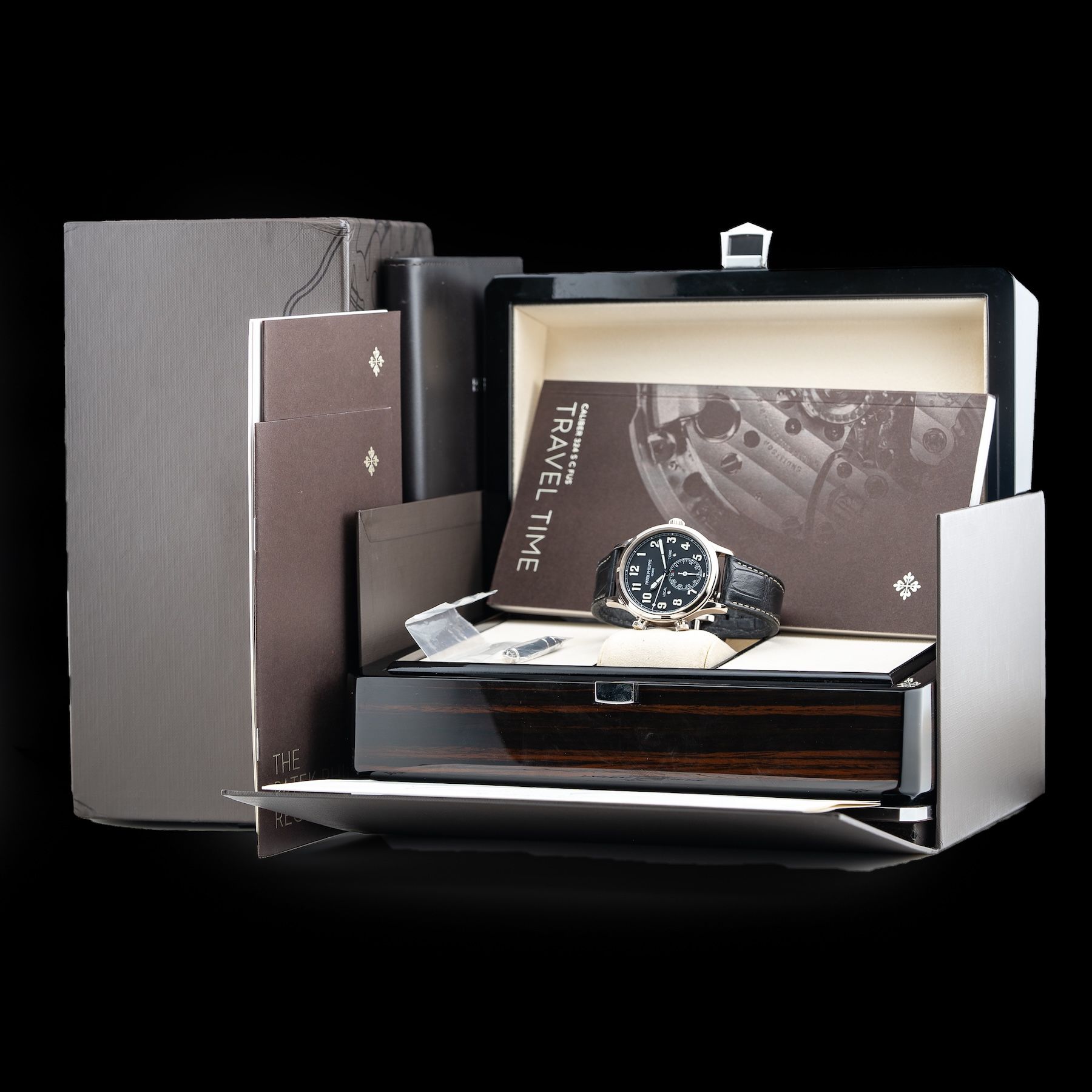 This Patek Philippe 5524G-001 Calatrava Pilot Travel Time is in GREAT condition. It has boxes and papers. This watch has been fully authenticated and certified by Exquisite Timepieces. This watch has been fully authenticated and certified by Exquisite Timepieces. Please note, the photos shown are of the actual watch you will receive.
