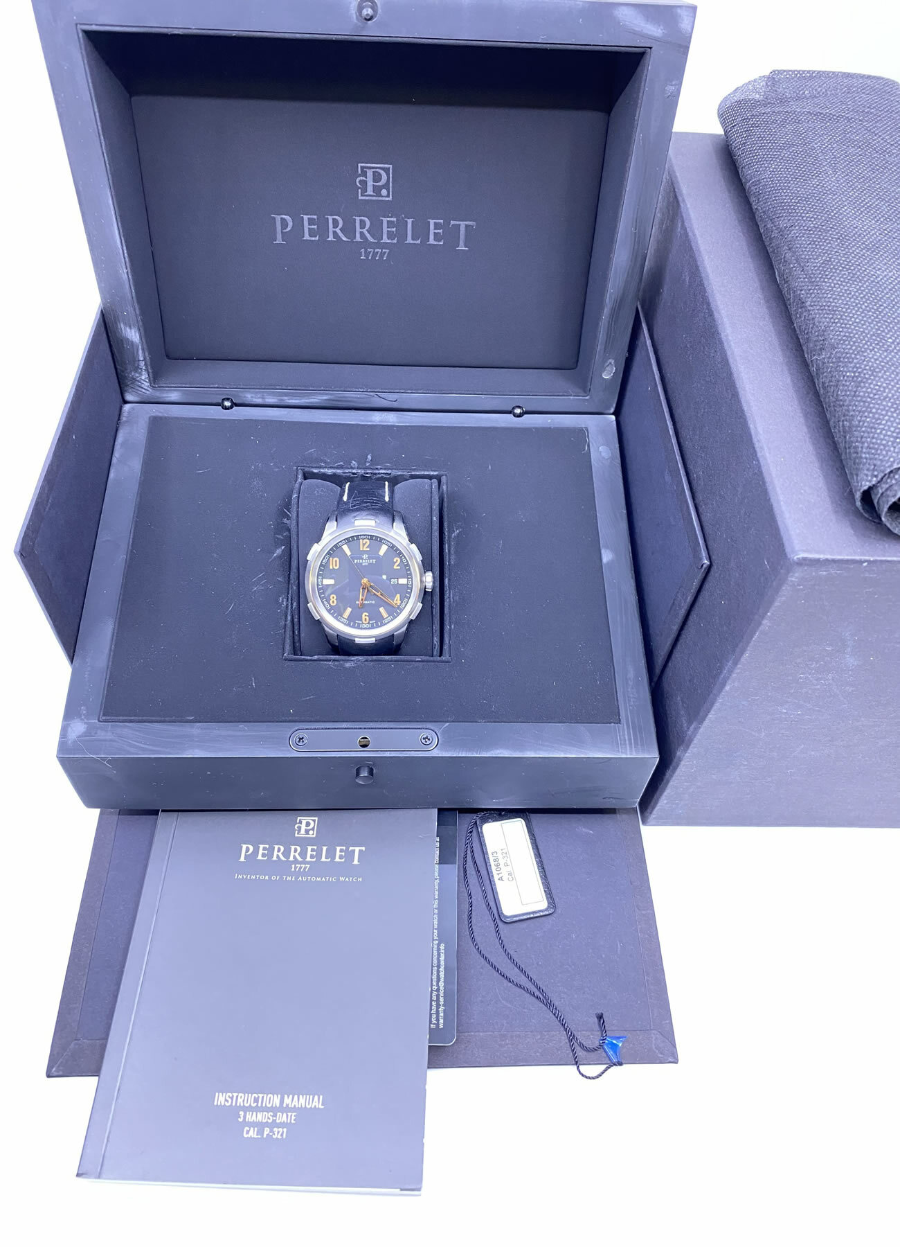 This Perrelet A1068 is in EXCELLENT condition. This watch includes its original box and papers.