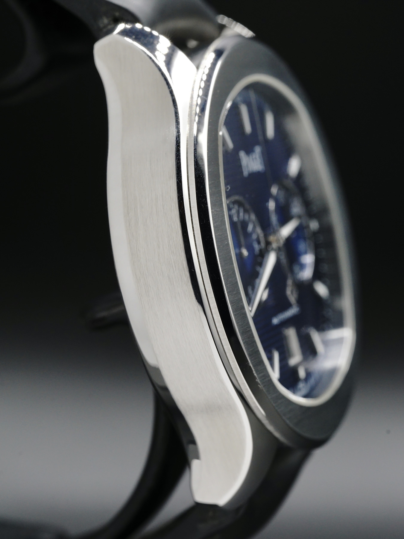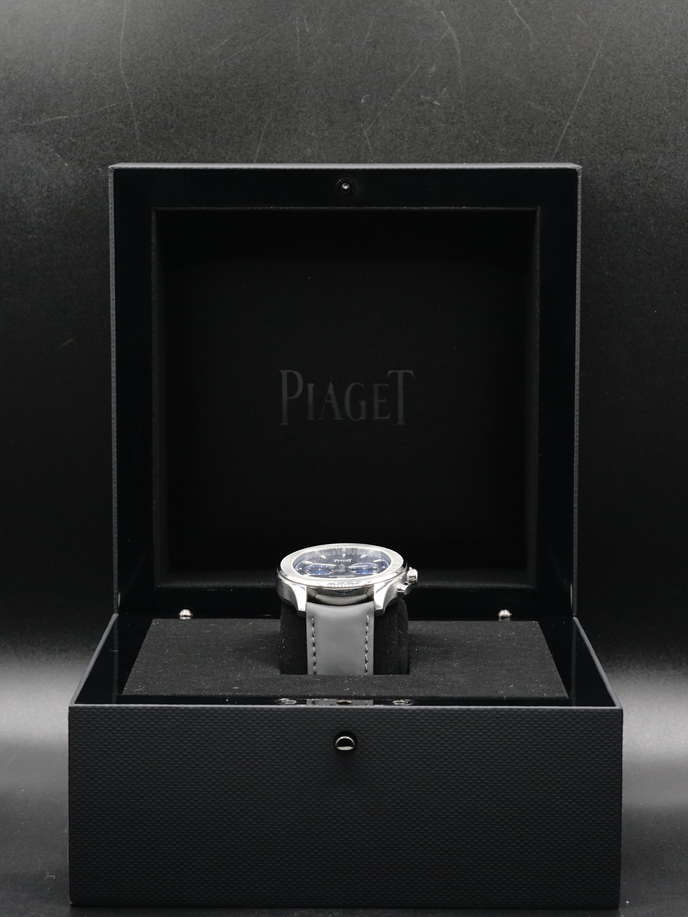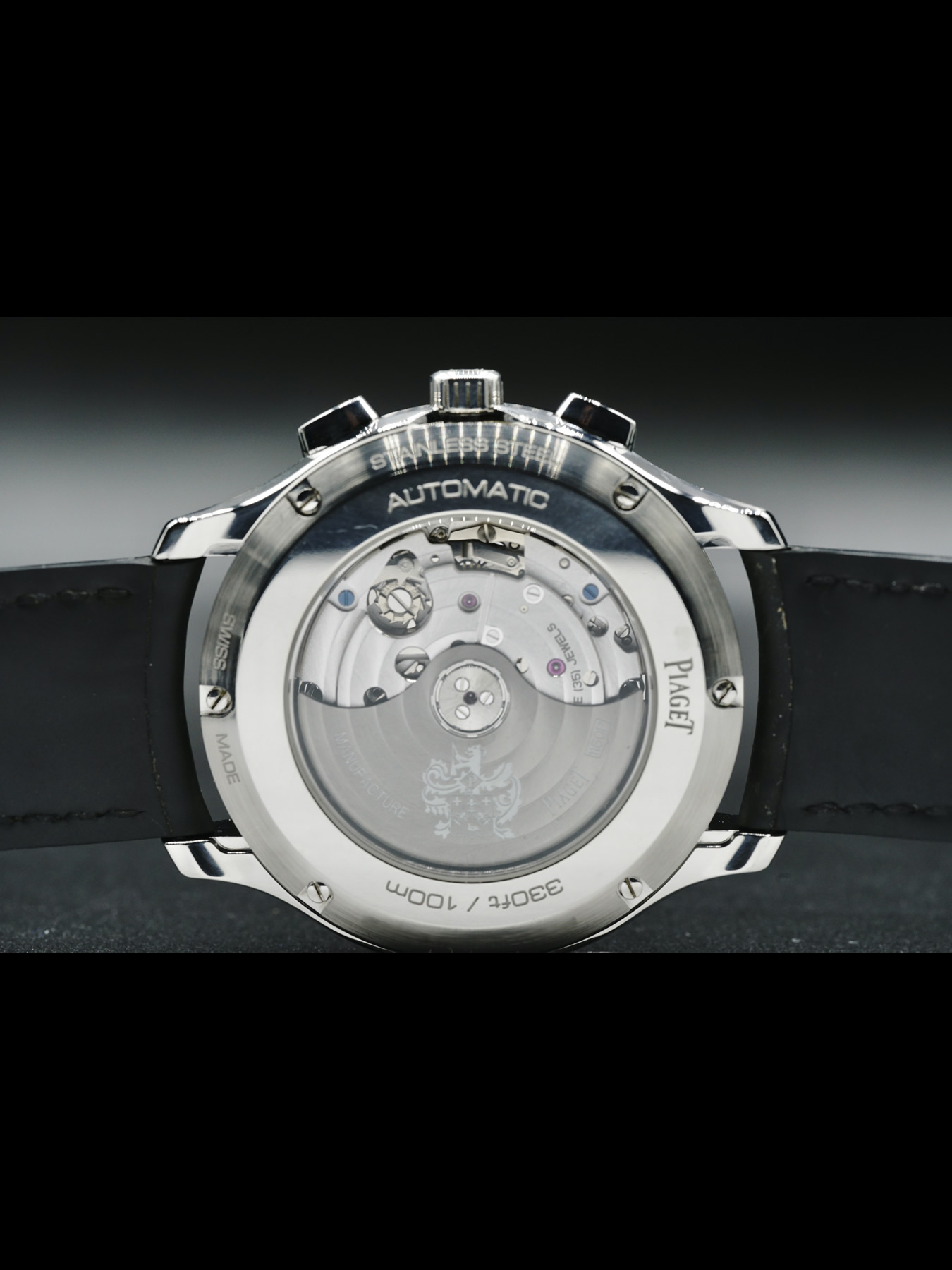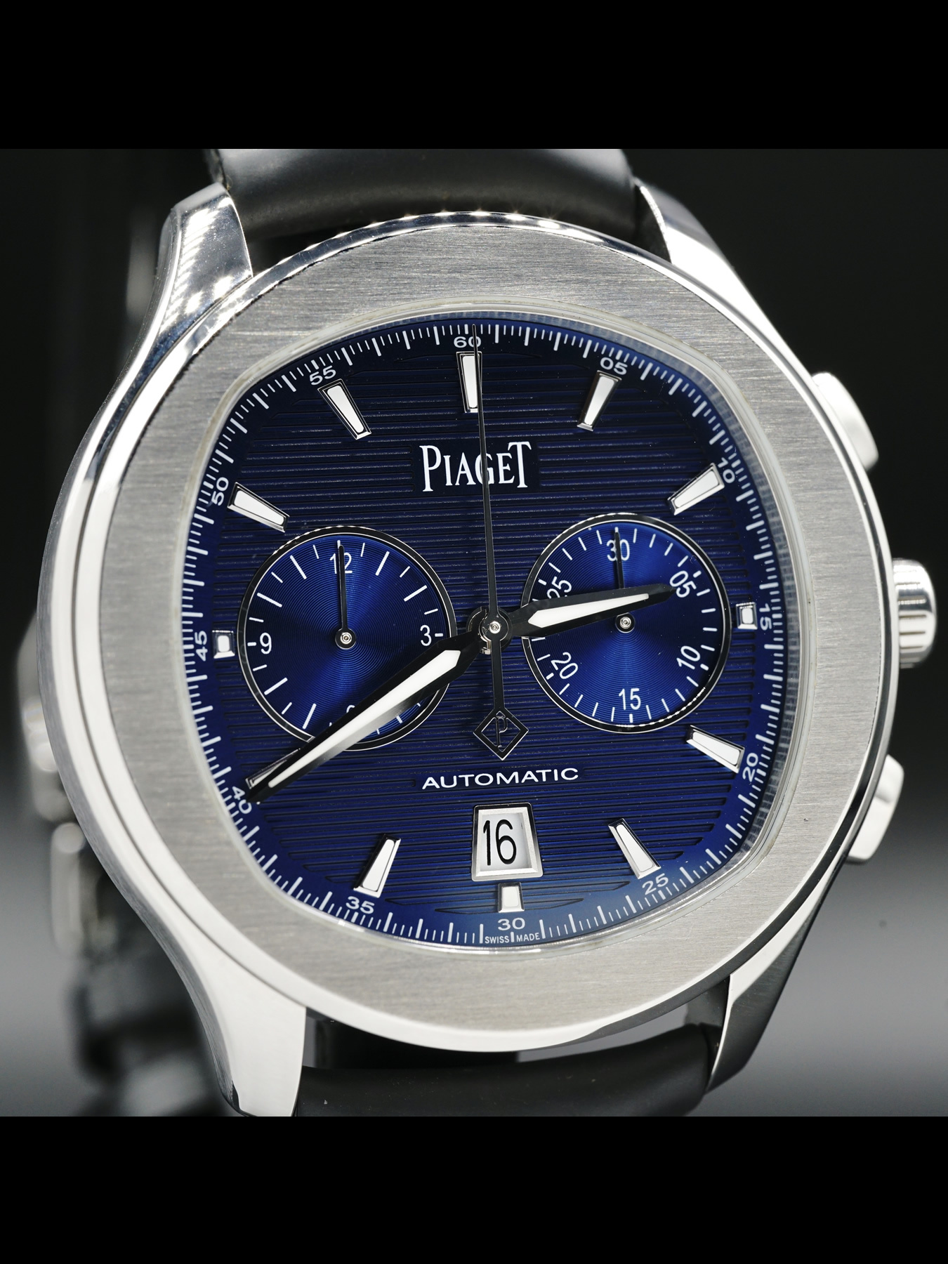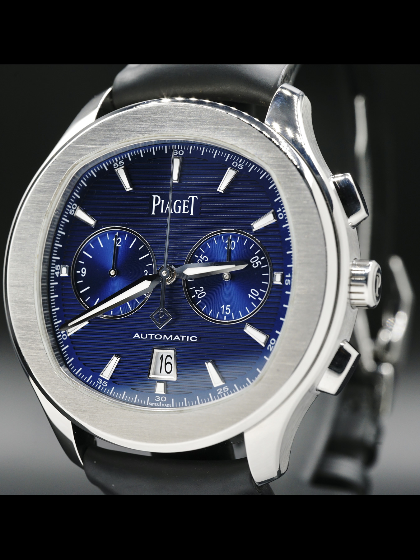 This Piaget Polo S Chronograph is in EXCELLENT condition. This watch includes its original box, instruction manual, guarantee & certificate booklet, and warranty certificate dated for September 2016. Extra stainless steel bracelet.