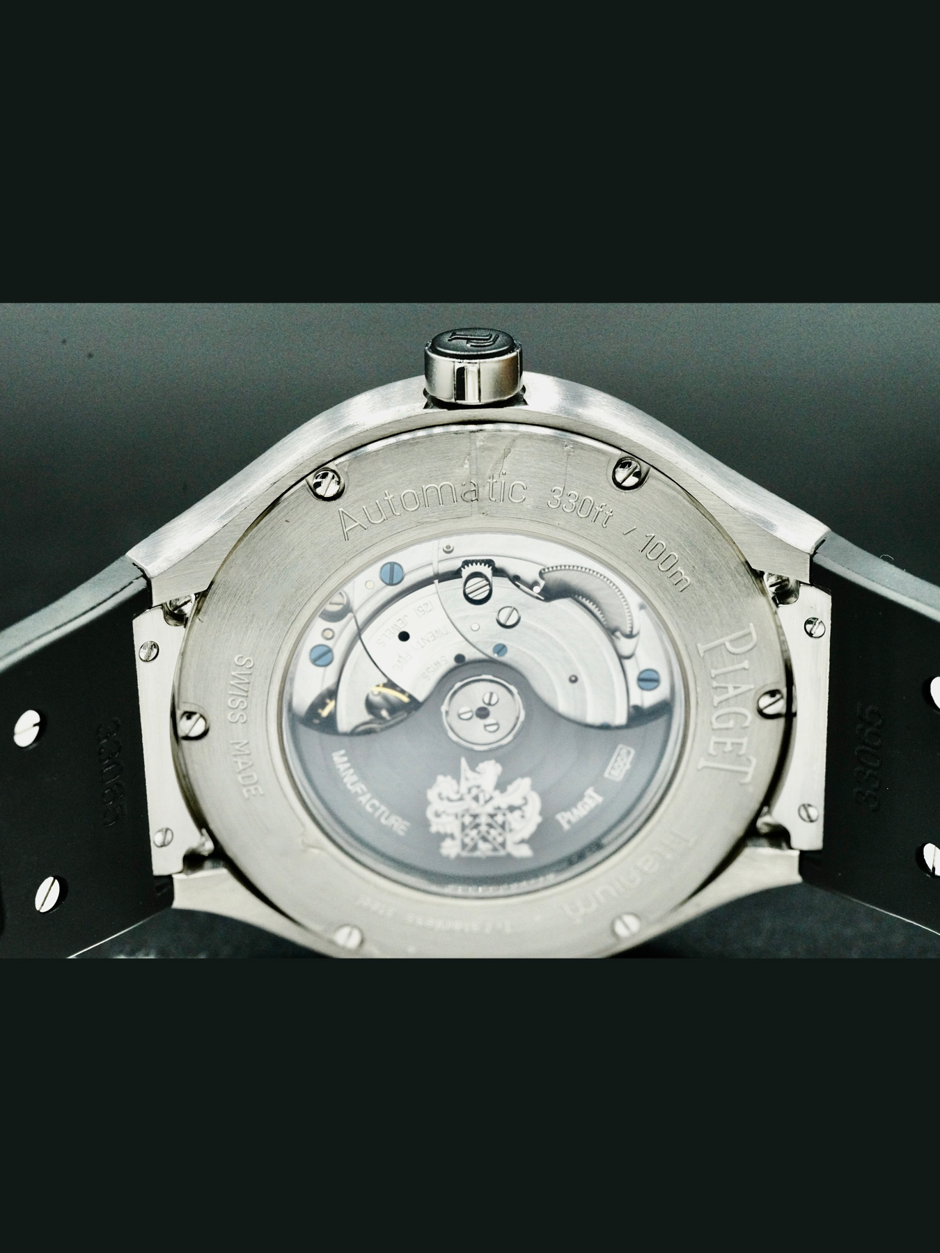 This Piaget GOA34011 Polo Forty Five Auto Titanium is in GREAT condition. This watch includes original box and instructions only. This watch has been fully authenticated and certified by Exquisite Timepieces.