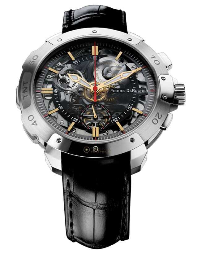 - This timepiece features a 55mm gold case paired with a high quality . It showcases a distinctive sapphire dial and is powered by a precise automatic winding movement. The watch is designed with a water resistance of up to 30m.