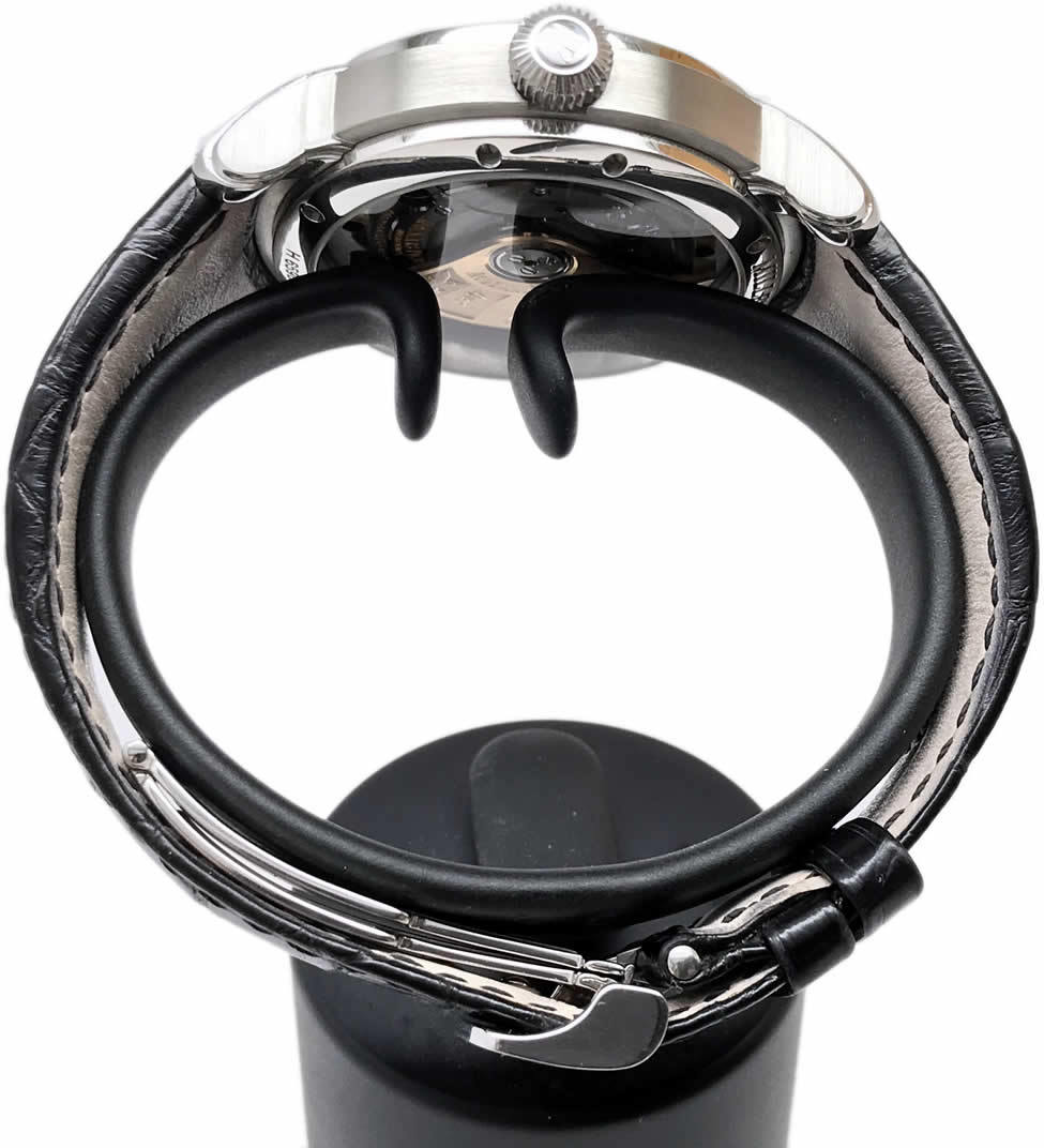 Designed and developed within the Manufacture, the calibre 4101 was reversed to enable the dial side to display components that are usually hidden on the back of the watch.